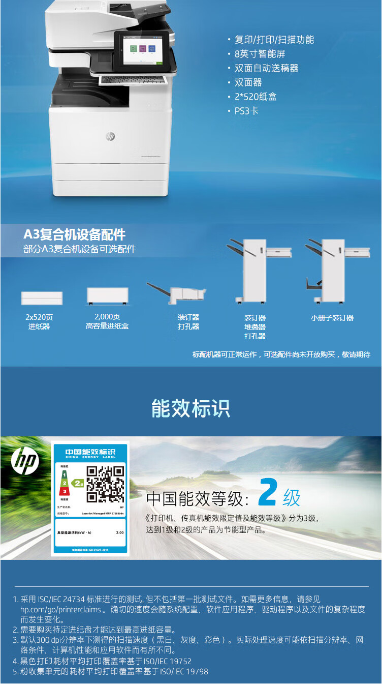 惠普/HP MFP E72535dn A3 黑白打印機(jī) 自動雙面打印 管理型數(shù)碼復(fù)合機(jī)多功能一體機(jī) 管理型數(shù)碼復(fù)合機(jī)(打印、復(fù)印、掃描;傳真可選