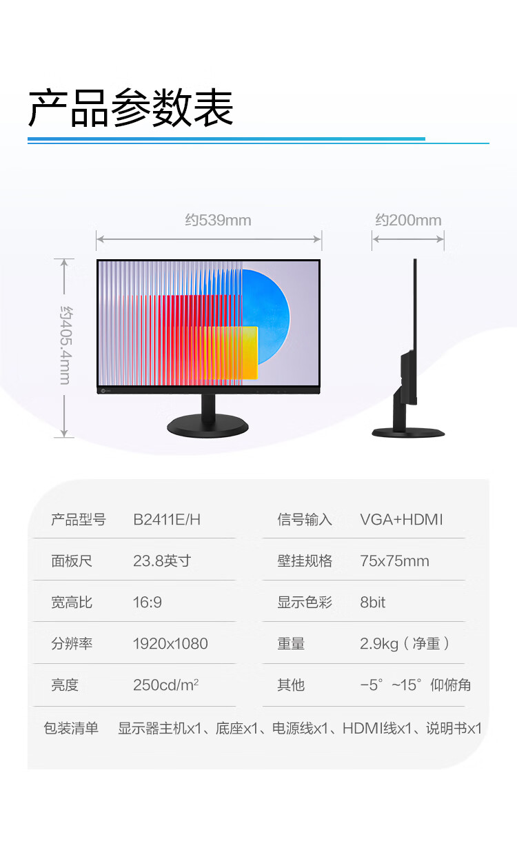 聯(lián)想/LENOVO B2411E/H 液晶顯示器 來酷23.8英寸 HDMI 全高清 三邊微邊框 低藍光不閃屏 可壁掛 電腦液晶辦公顯示器