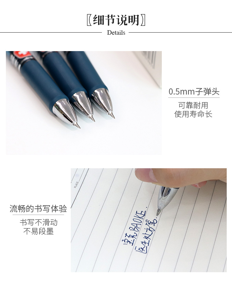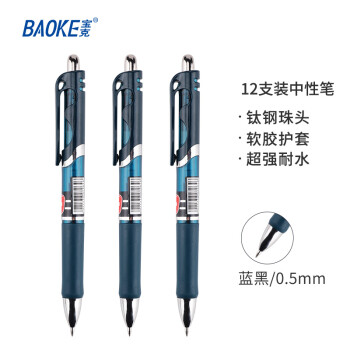 寶克(BAOKE) PC198 書寫用筆類用具醫(yī)生處方筆按壓式中性筆 簽名筆 水筆 0.5mm藍(lán)黑色12支/盒