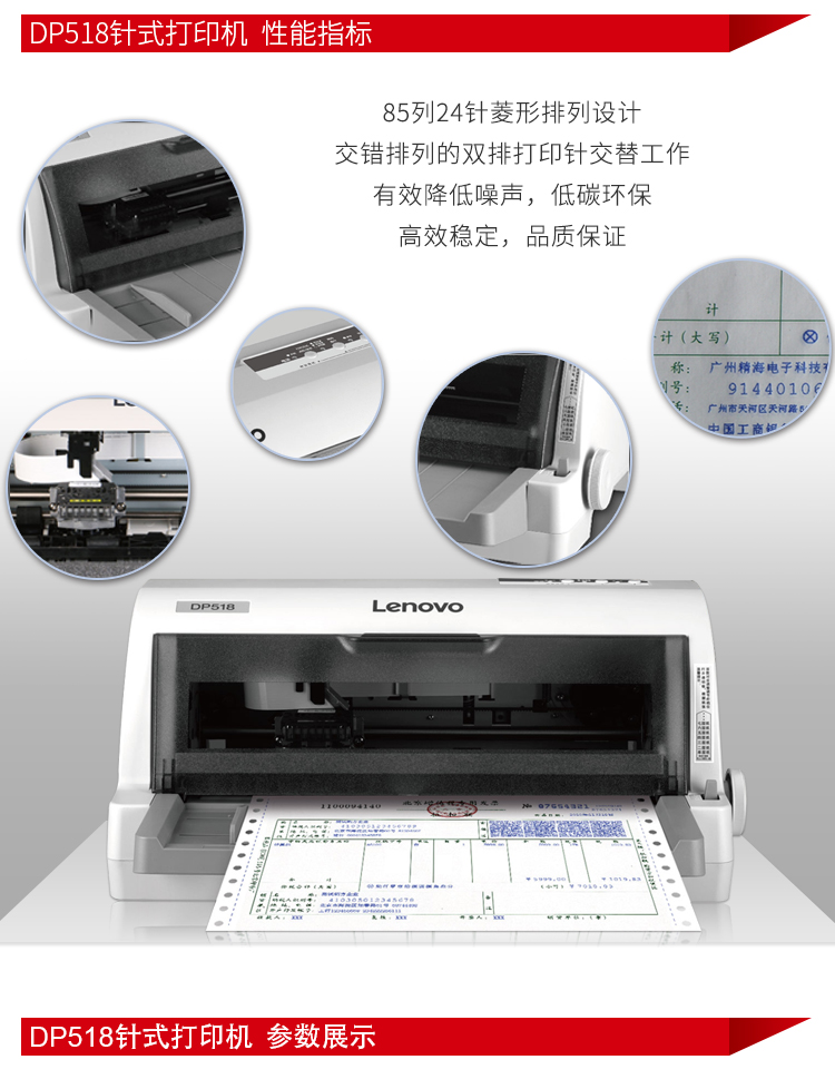 聯(lián)想(lenovo)DP518 國產(chǎn)針式平推24針高速票據(jù)打印機(jī)發(fā)票三聯(lián)單專用支持麒麟/統(tǒng)信/中科方德/Windows系統(tǒng)