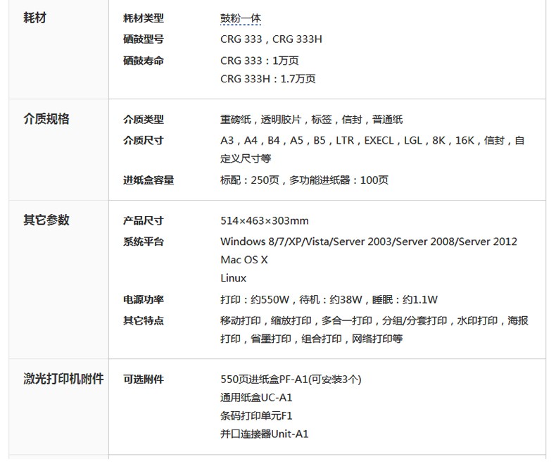 佳能/CANON LBP8750n A3 黑白打印機 黑白激光打印機A3幅面 官方標配
