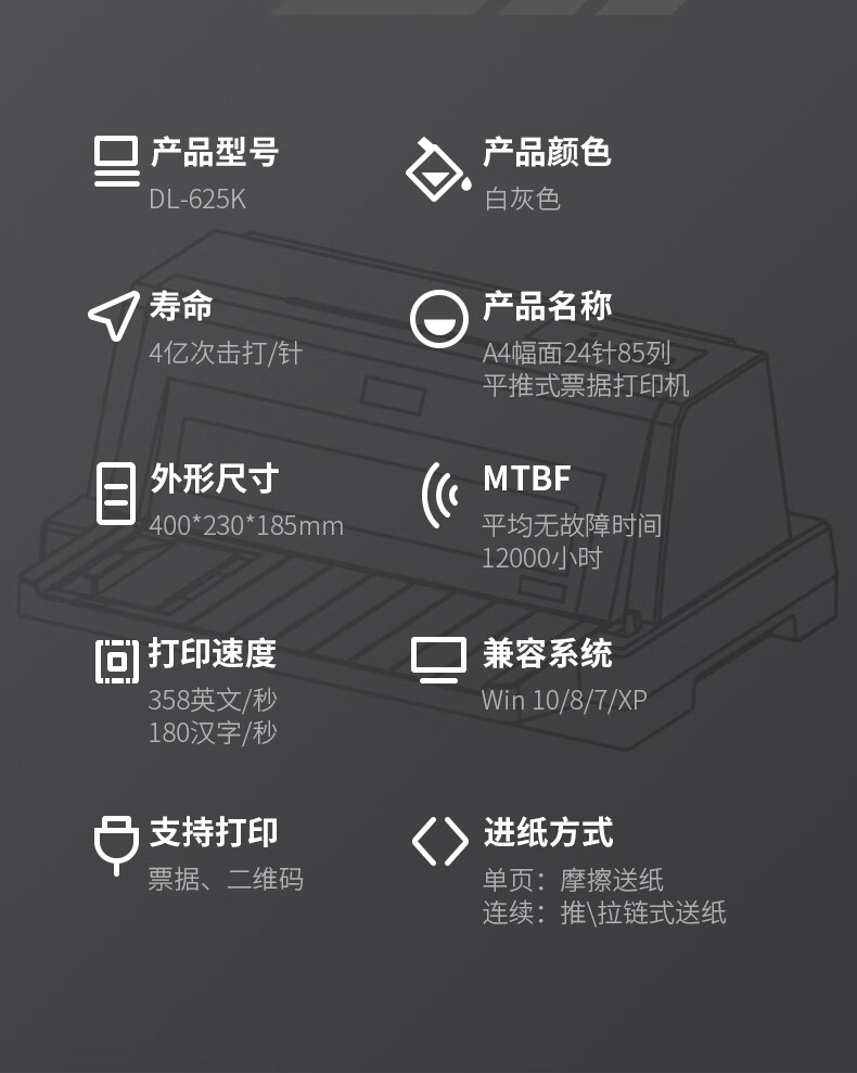 得力/deli DL-625K 票據(jù)打印機(jī) 針式打印機(jī)24針85列1+6連續(xù)打印營(yíng)改增稅務(wù)發(fā)票出入庫(kù)發(fā)貨單票據(jù)支票打印機(jī)