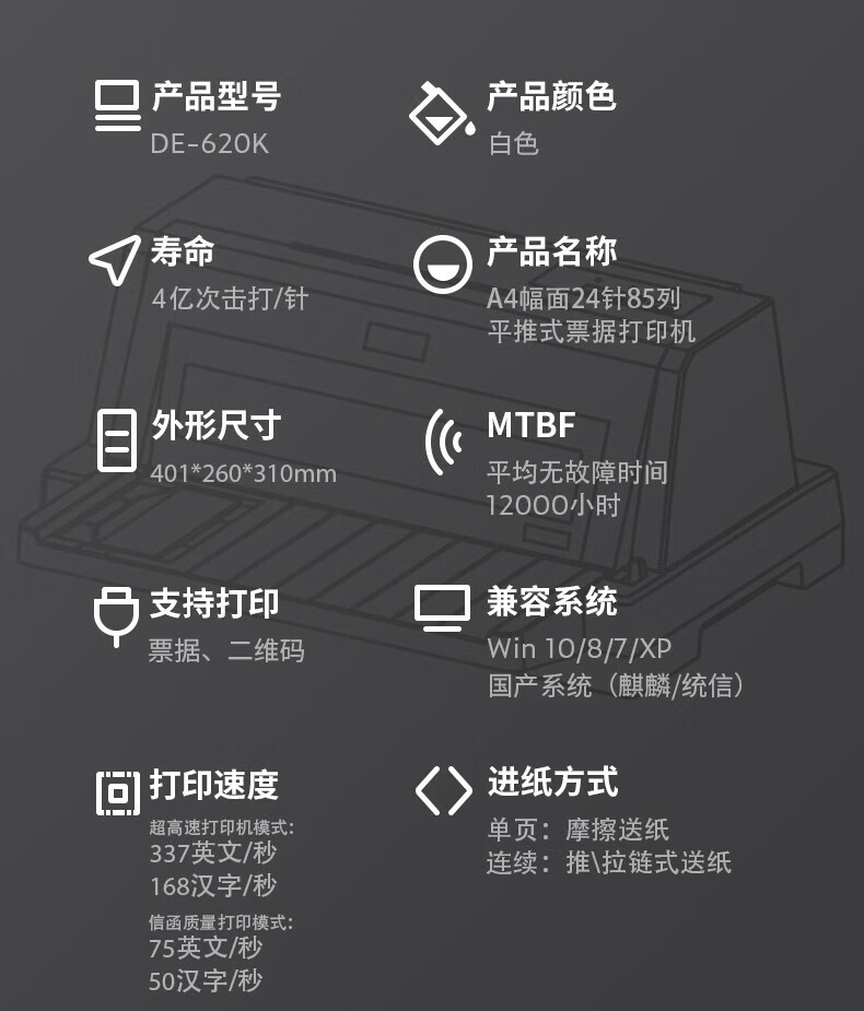 得力/deli DE-620K 票據(jù)打印機(jī) 1 6聯(lián)針式打印機(jī) 稅控發(fā)票打印機(jī) 85列 【7聯(lián)高速】前后進(jìn)紙