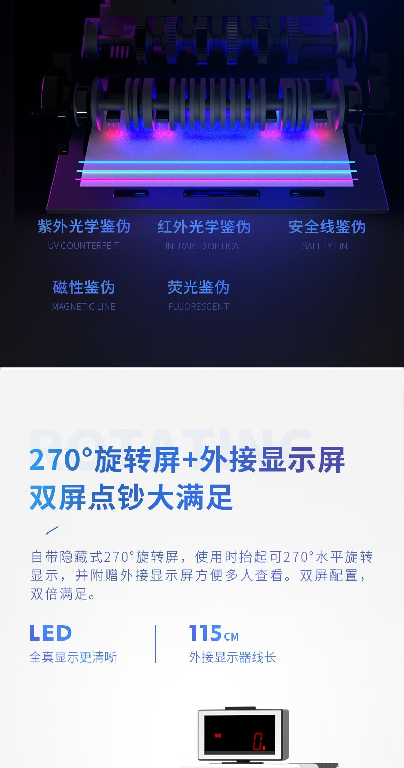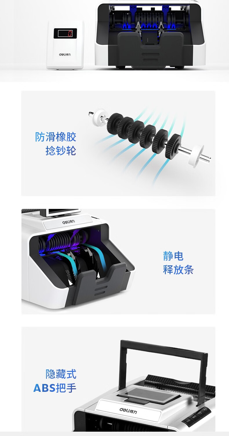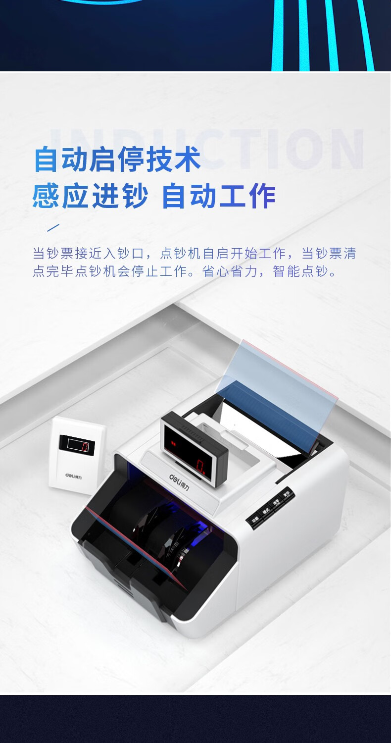 得力(deli)支持新版人民幣高配驗鈔點鈔機數(shù)錢機智能語音收銀支付 【國標B類】智能系統(tǒng)