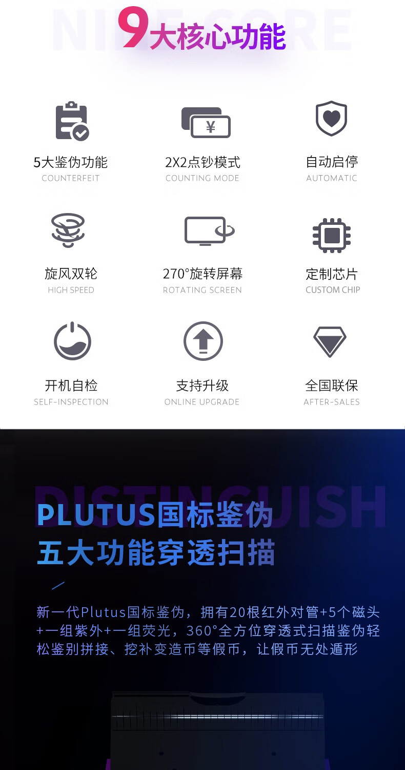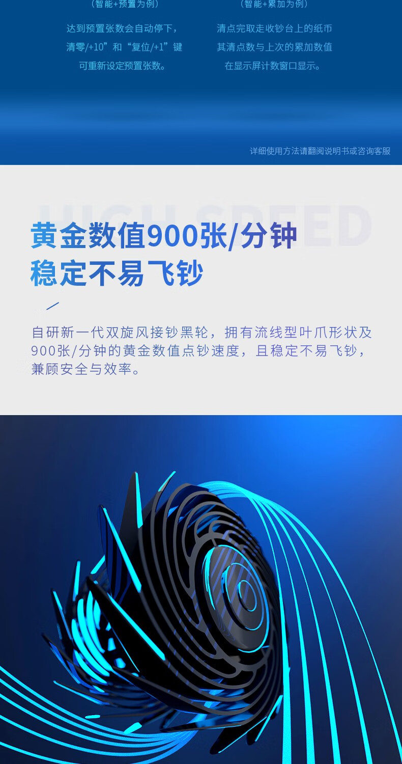 得力/deli 3919S 點鈔機 支持新版人民幣高配驗鈔點鈔機數(shù)錢機智能語音收銀支付 【國標B類】智能系統(tǒng)