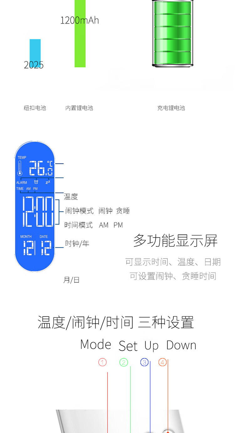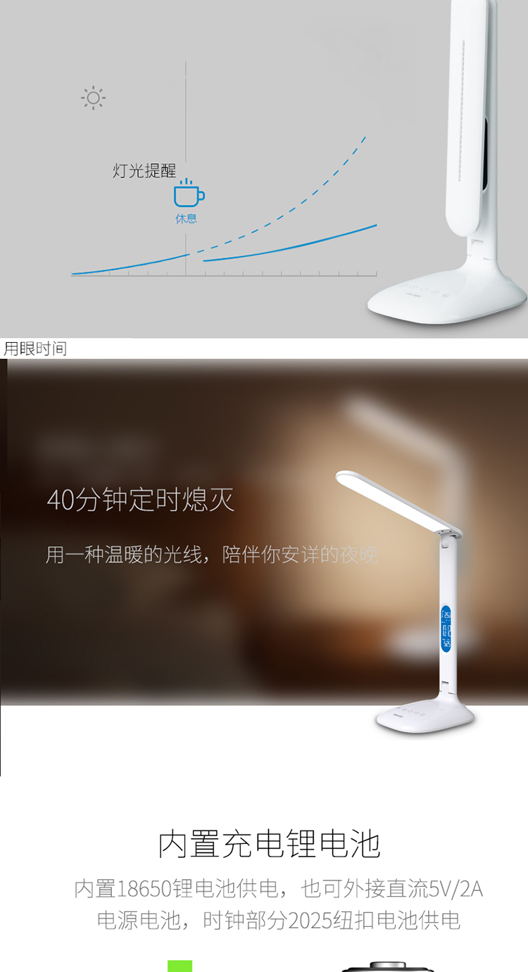 得力(deli)鋰電池LED可充電學(xué)習(xí)臺(tái)燈 時(shí)間鬧鐘臥室床頭燈 可調(diào)光調(diào)色 白4325