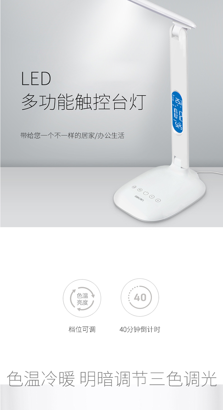 得力/deli 4325 臺(tái)燈/壁燈/床頭燈/落地?zé)?鋰電池LED可充電學(xué)習(xí)臺(tái)燈 時(shí)間鬧鐘臥室床頭燈 可調(diào)光調(diào)色