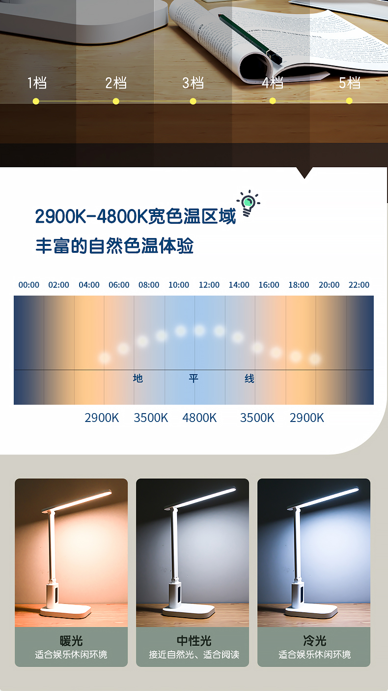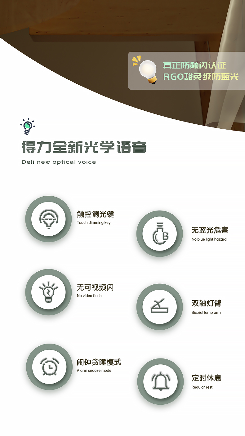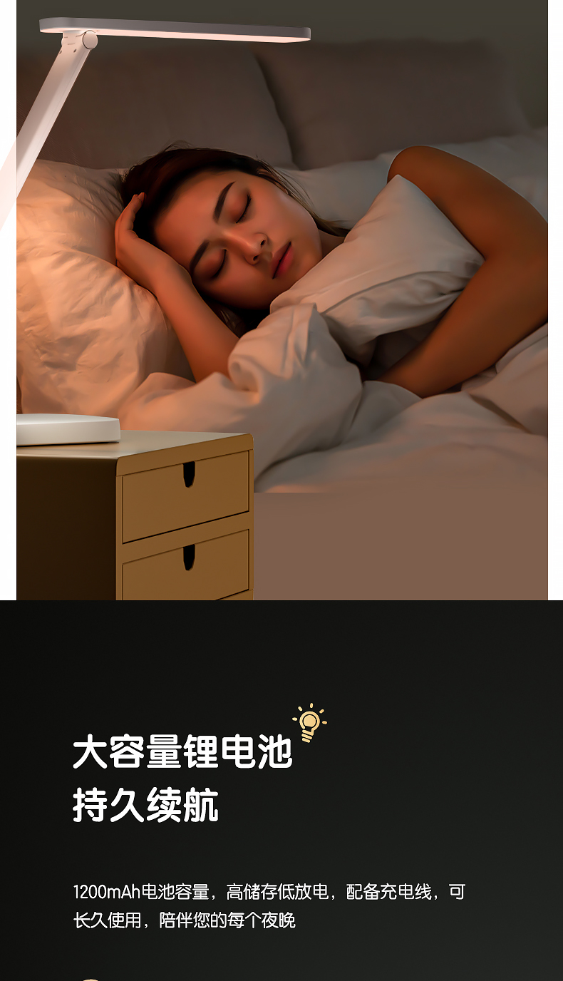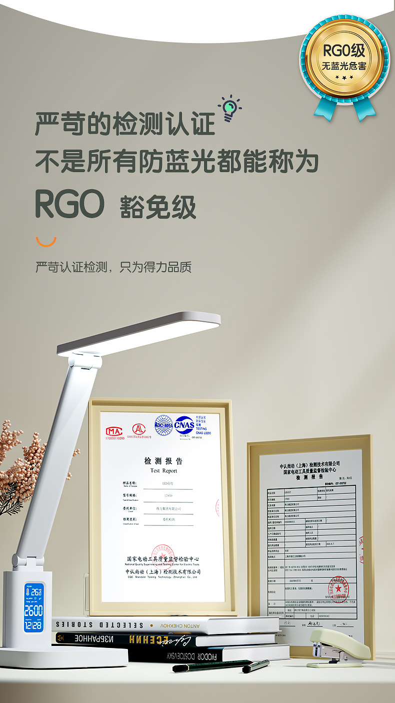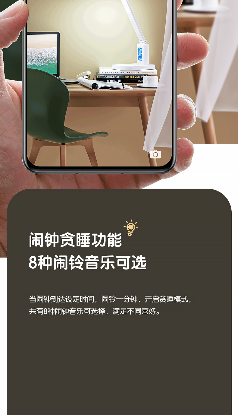 得力/deli 17859 臺燈/壁燈/床頭燈/落地?zé)?LED折疊臺燈 時間溫度日期同屏顯示帶鬧鐘 RG0級減藍(lán)光 床頭宿舍書桌工作臺燈