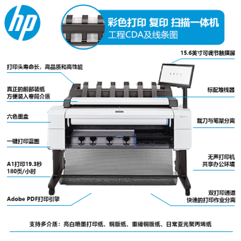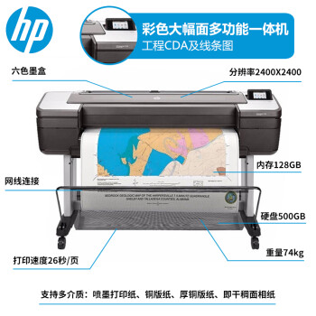 ¥ 36500.00惠普(HP) 繪圖儀 A1A0t650\/730\/830大幅面寫真噴繪機打印機工程CAD及線條藍圖 T2600PS A0-6色雙紙軸一體機