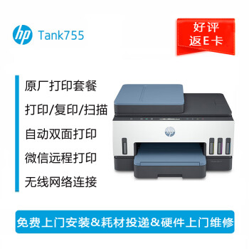 ¥ 2850.00惠普(HP)Tank 755彩色自動(dòng)雙面無(wú)線打印機(jī)家用學(xué)生作業(yè) 打印機(jī)辦公 復(fù)印掃描一體機(jī)6000頁(yè)暢打一年服務(wù)
