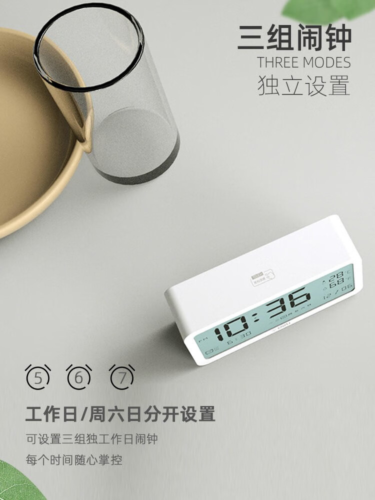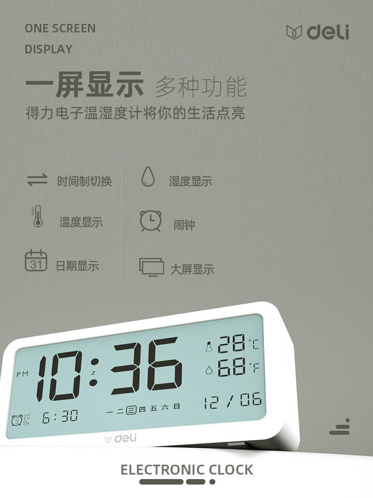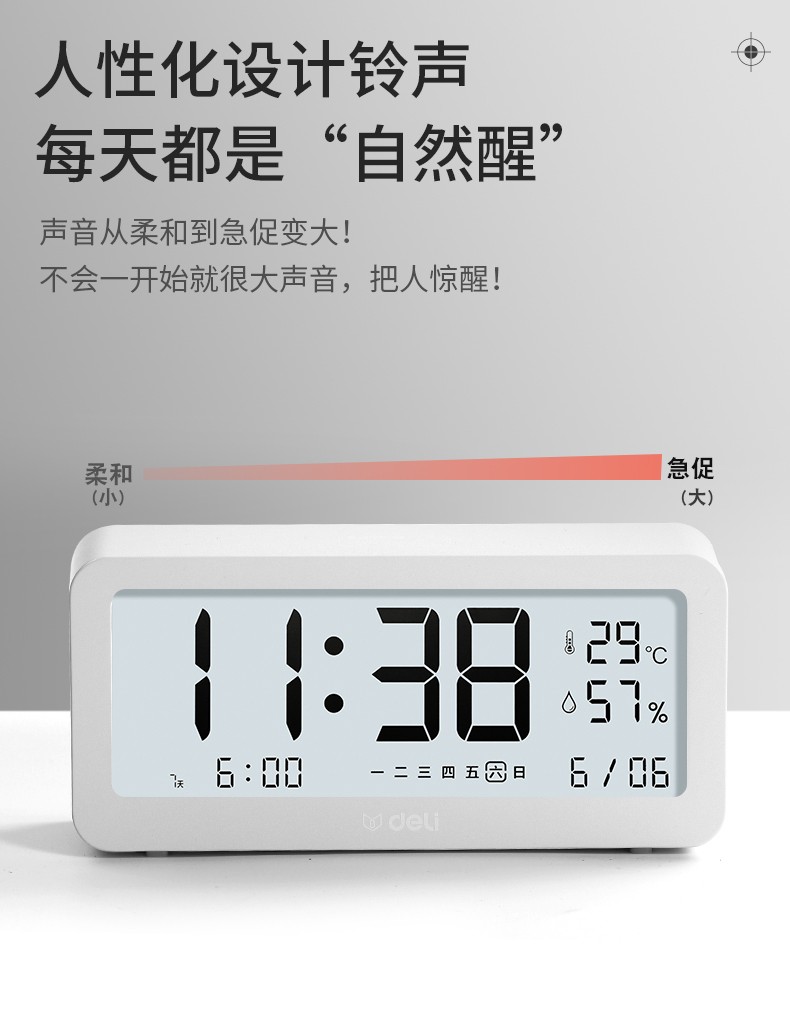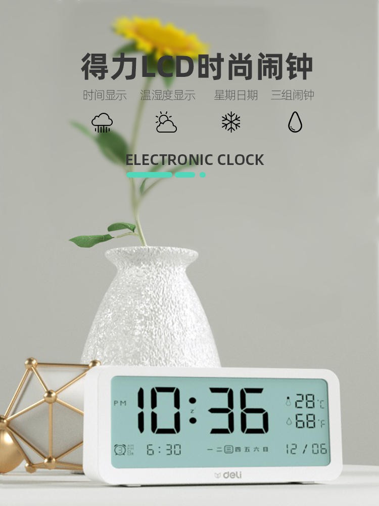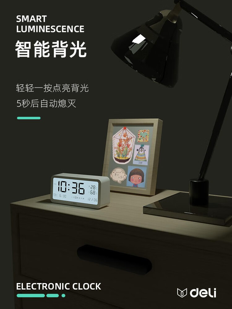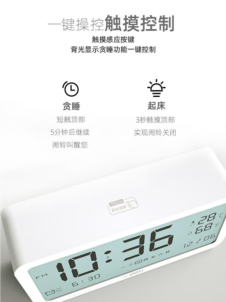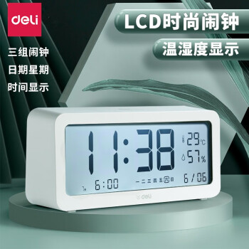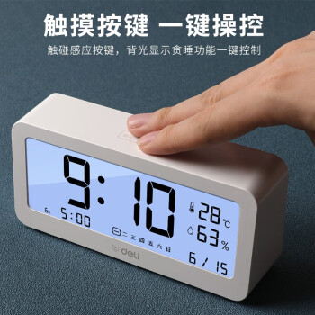得力(deli) 多功能電子鬧鐘學(xué)生用臥室床頭簡約智能溫濕度計(jì)桌面夜光靜音數(shù)字智能時(shí)鐘表 大號白色【192*88*50mm】8827
