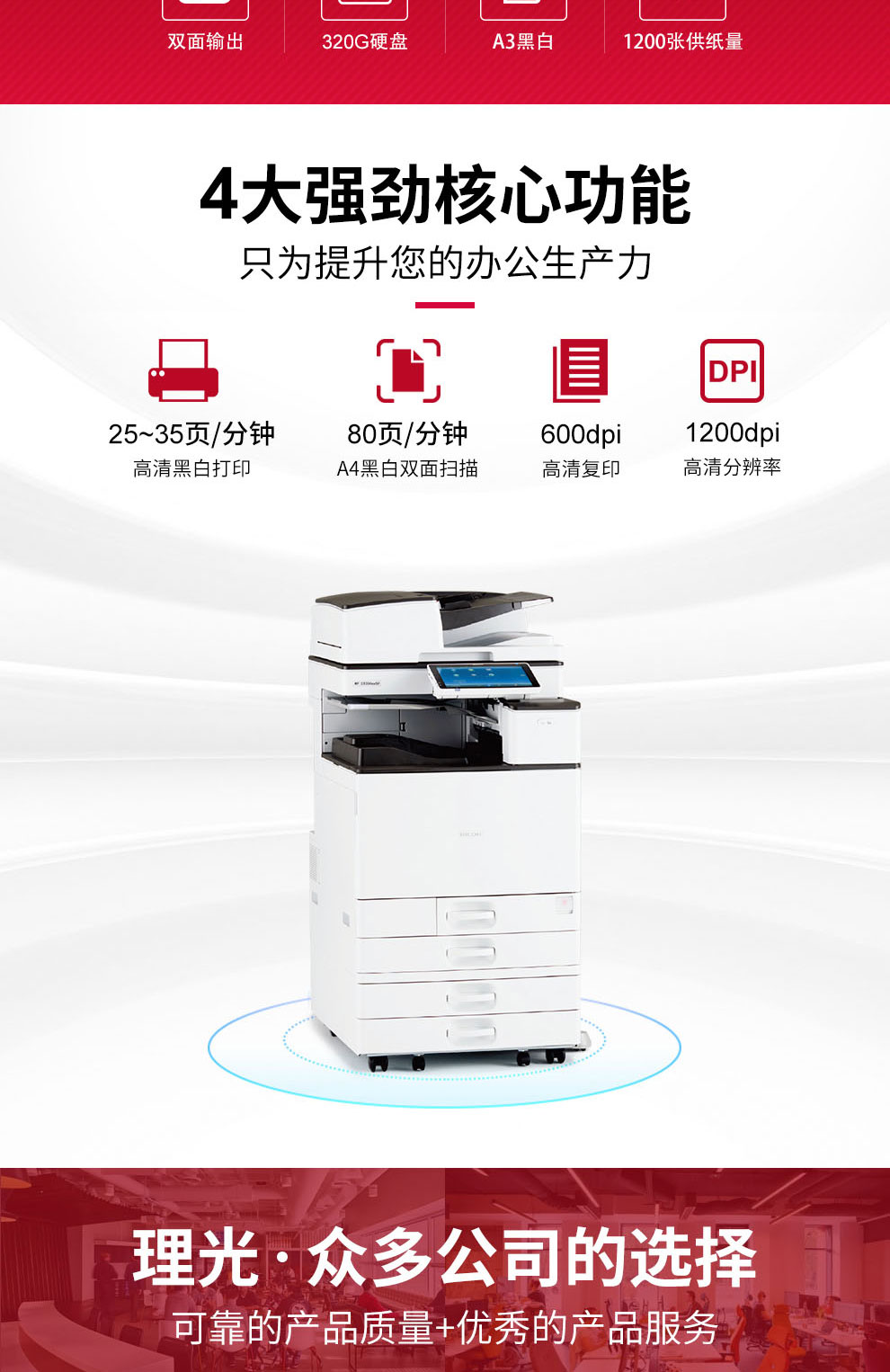 理光/RICOH MP 3055SP A3 黑白打印機(jī) 黑白A3打印機(jī) 復(fù)印機(jī) 復(fù)合機(jī) 網(wǎng)絡(luò)彩色掃描 (30頁(yè)/分鐘) 雙紙盒+雙面輸稿器