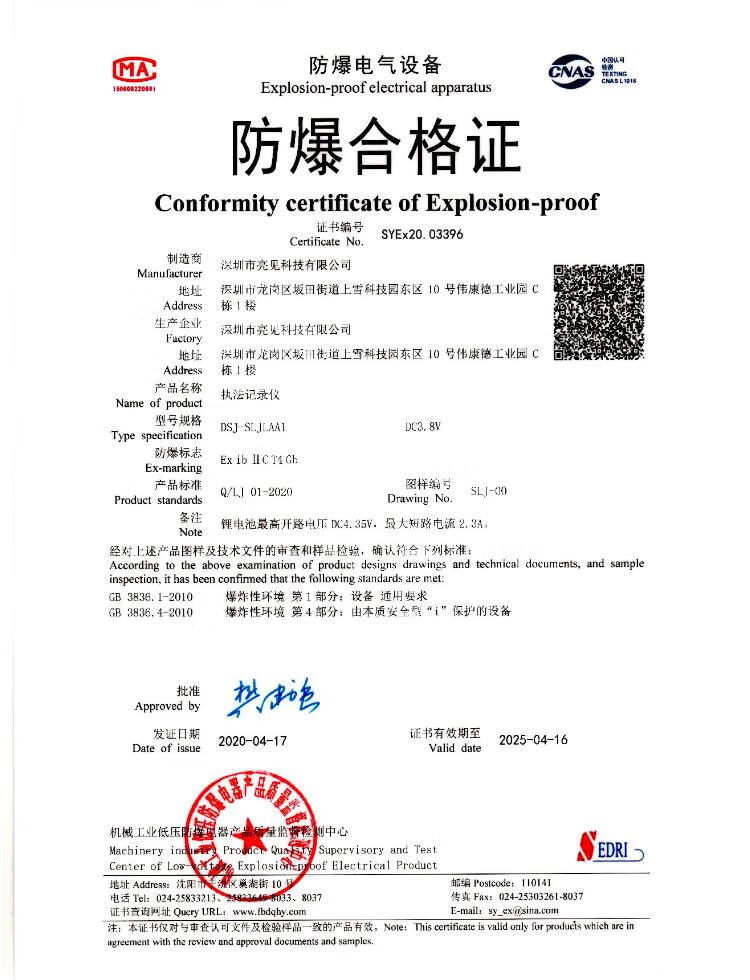 亮見 DSJ-SLJLAA1 通用無線電通信設(shè)備 防爆執(zhí)法記錄儀 高清紅外夜視 超大廣角 128G