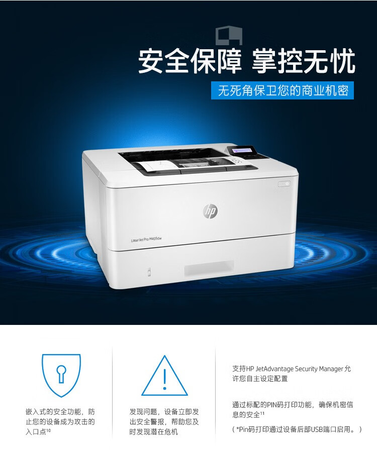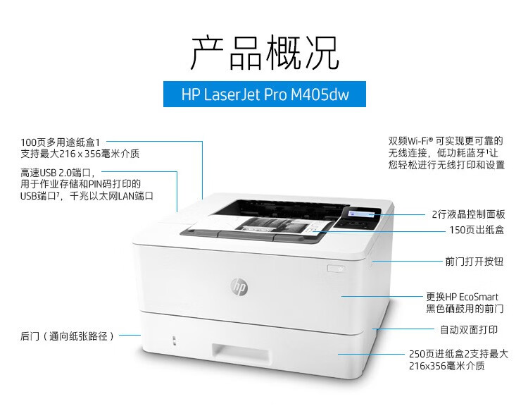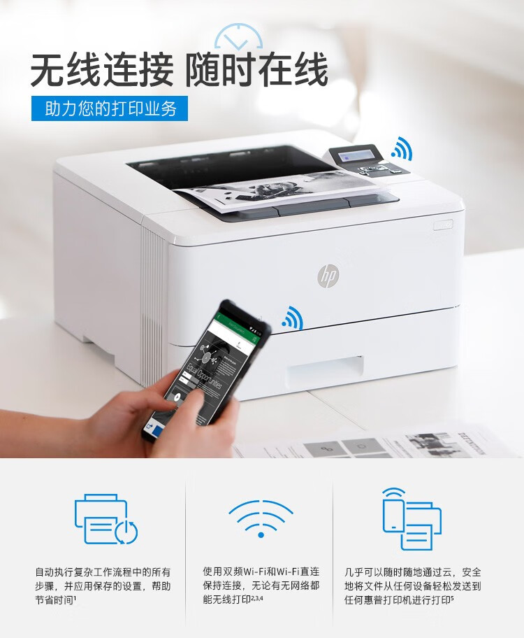 惠普/HP 打印機(jī)M405dw A4黑白雙面無(wú)線單功能激光打印機(jī)自動(dòng)雙面+USB/無(wú)線連接