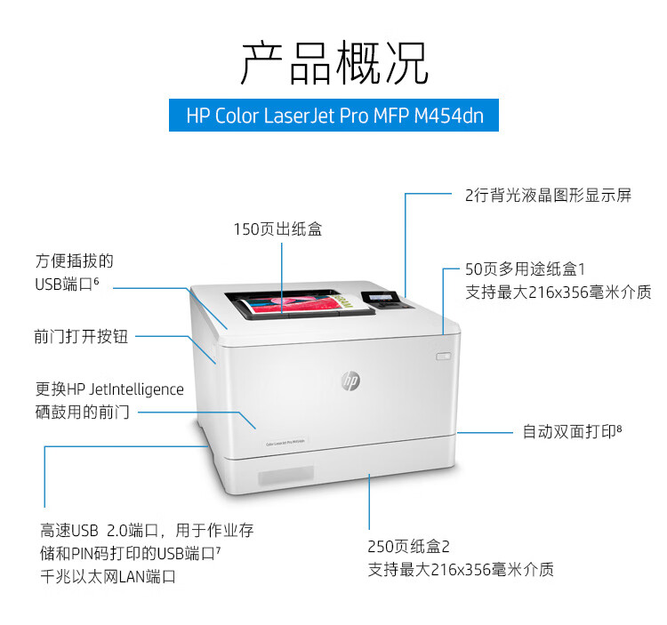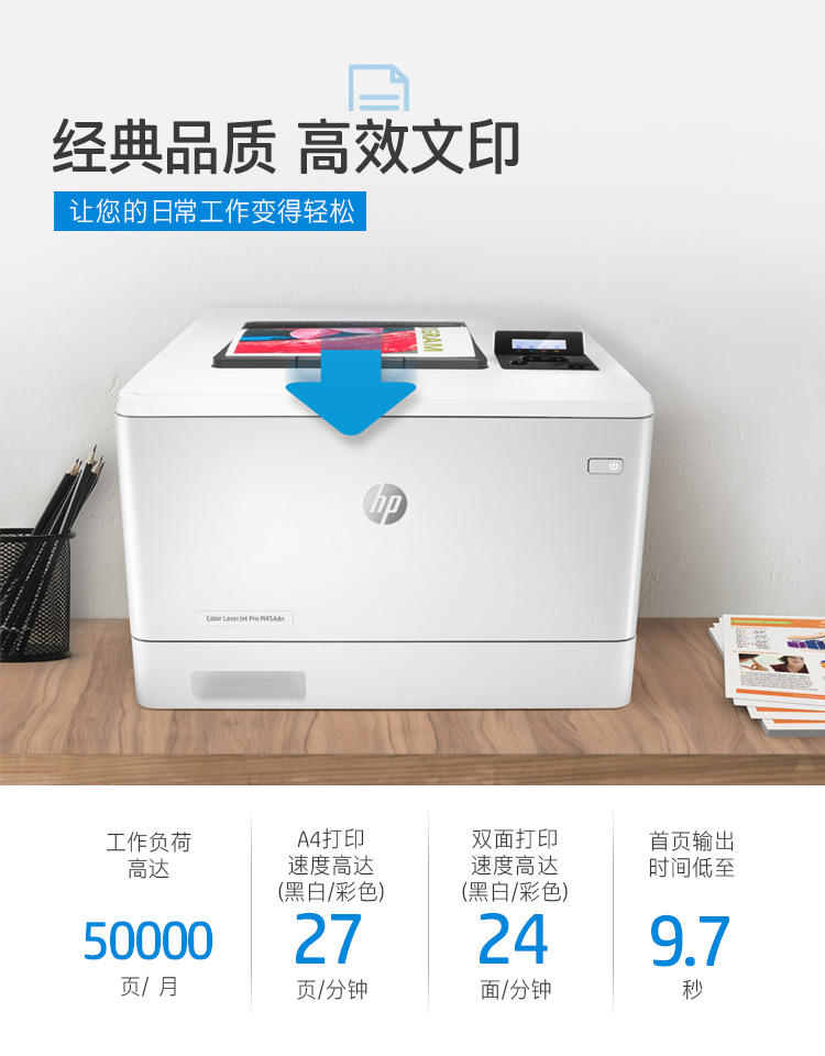 惠普/HP M454dn A4彩色激光單功能打印機(jī) 自動(dòng)雙面打印 有線連接