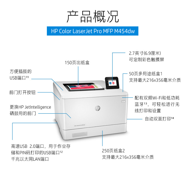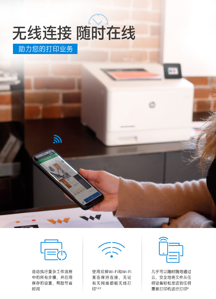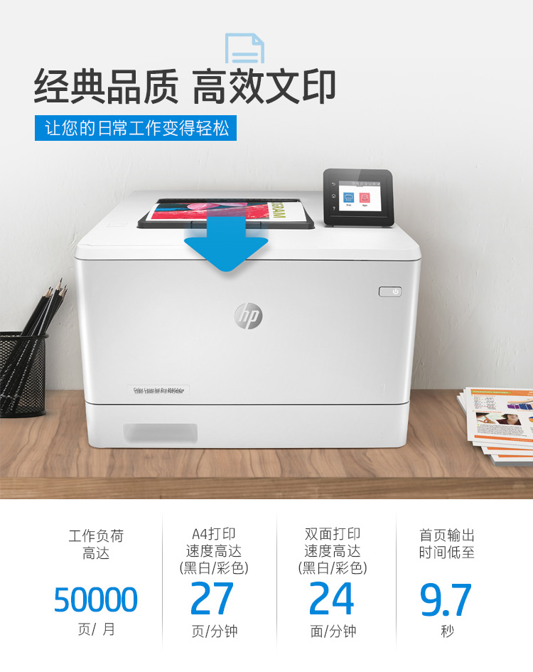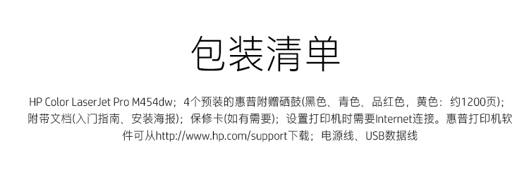 惠普/HP M454dw A4 彩色打印機(jī) 彩色打印 液晶顯示屏 自動雙面打印 無線連接