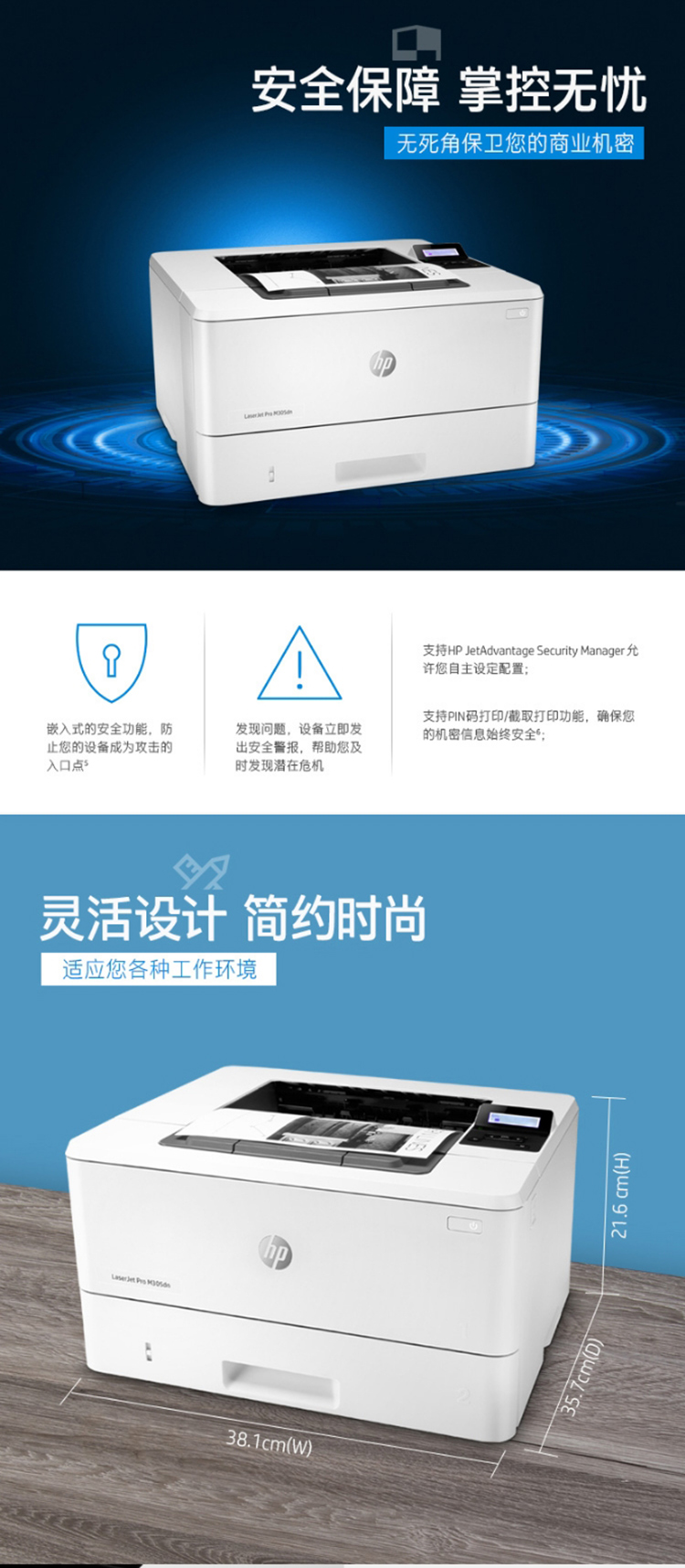 惠普/HP M305dn A4黑白打印機 自動雙面打印 USB連接/有線網(wǎng)絡(luò)