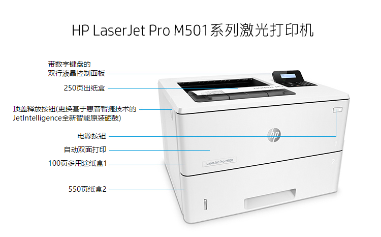 惠普/HP M608n A4 黑白打印機 激光雙面辦公 官方標(biāo)配