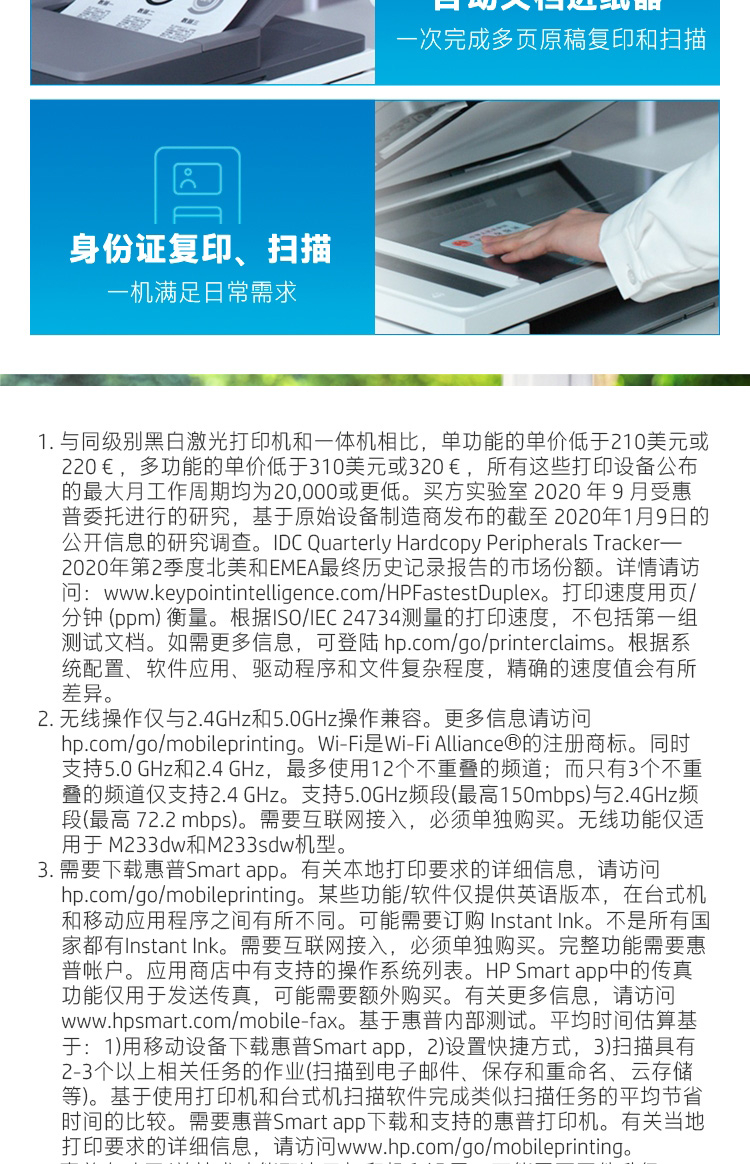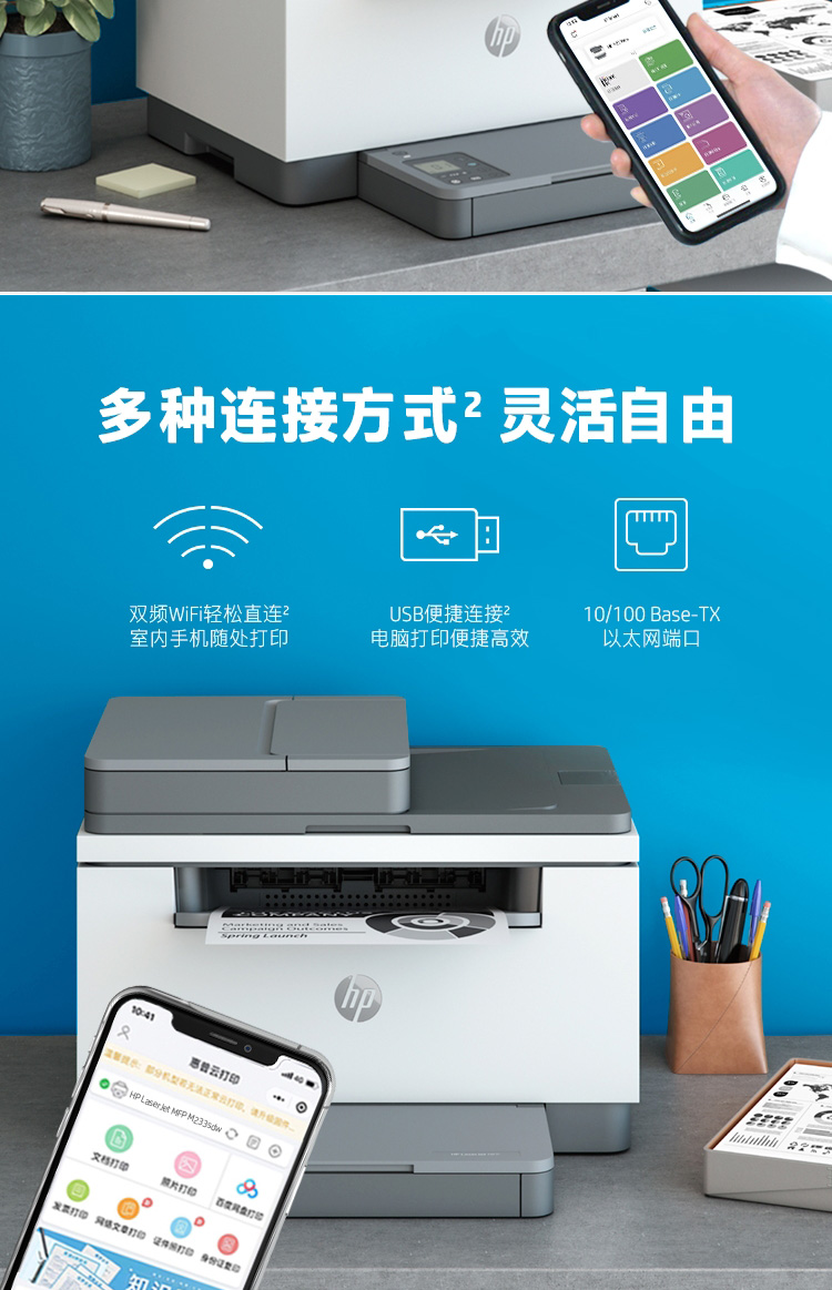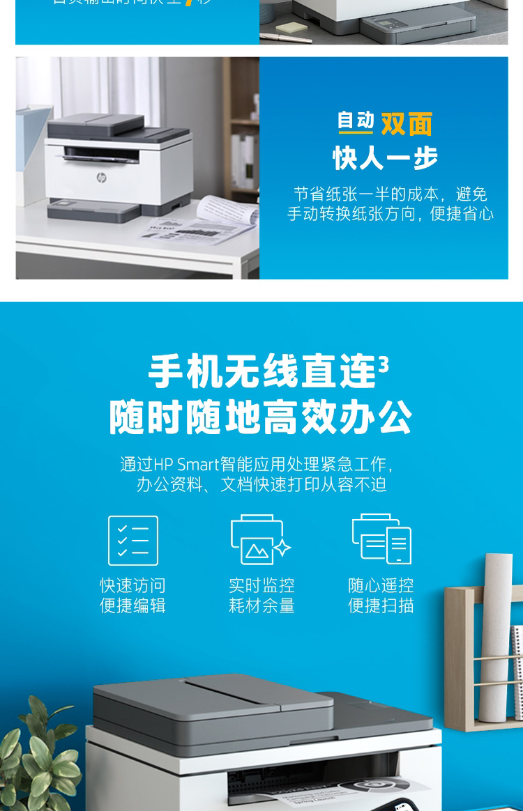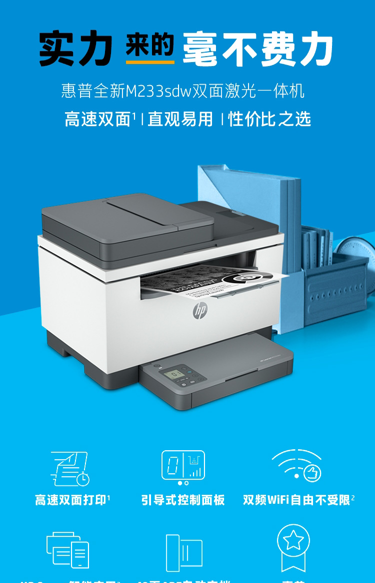 惠普(HP)雙面激光打印機(jī)辦公家用一體機(jī)黑白多功能A4打印復(fù)印掃描 M233sdn(三合一批量掃描+雙面+有線)