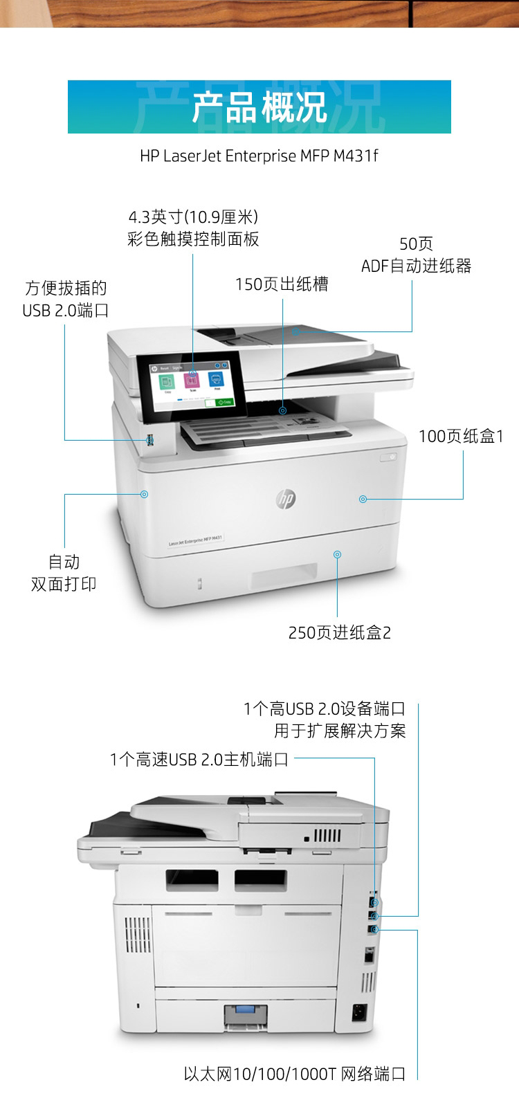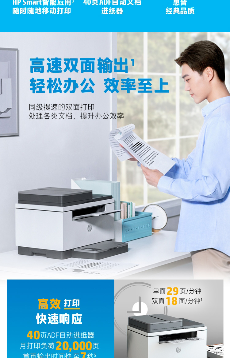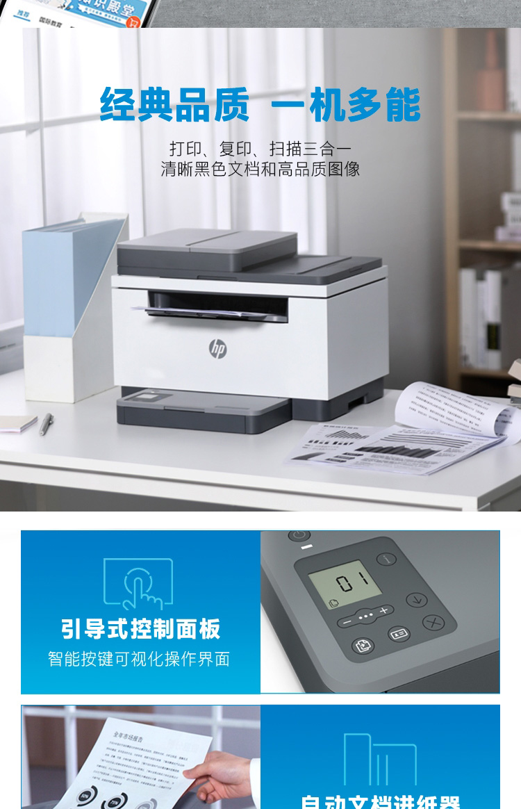 惠普(HP)雙面激光打印機(jī)辦公家用一體機(jī)黑白多功能A4打印復(fù)印掃描 M233sdn(三合一批量掃描+雙面+有線)