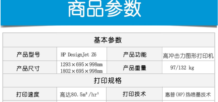 惠普/HP DesignJet Z6 A3 彩色打印機(jī) 系列繪圖儀 6色大幅面 GIS廣告效果圖影像照片打印機(jī) Z6 24英寸 PS 6色繪圖儀(A1)