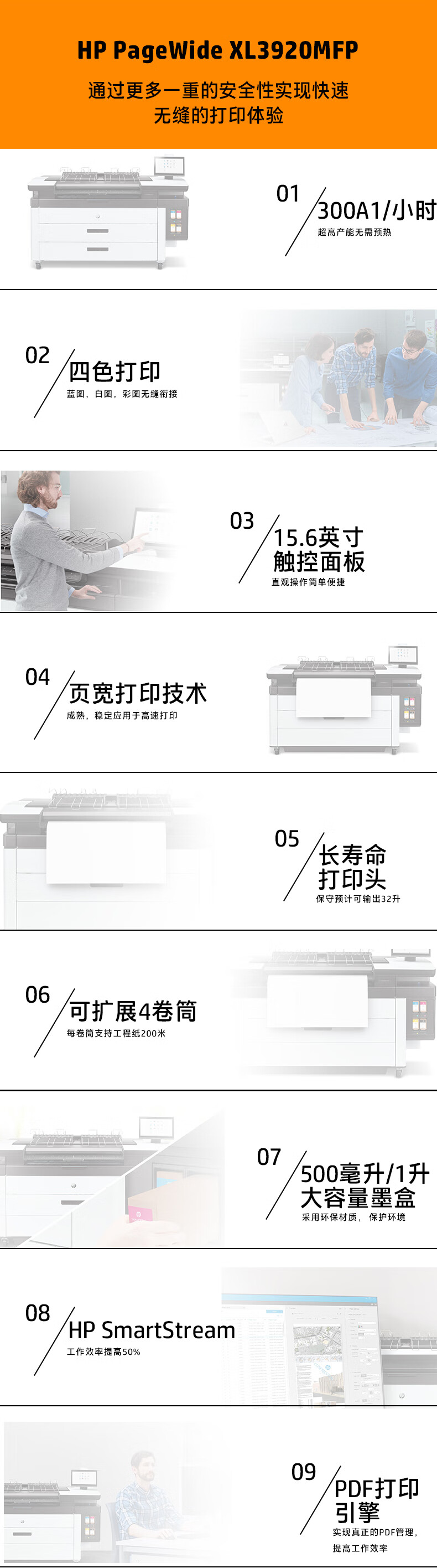 惠普(hp) PageWide XL3920 MFP 專(zhuān)業(yè)高速彩色寬幅打印大幅面打印機(jī)繪圖儀一體機(jī) 40英寸3920 MFP 一體機(jī)