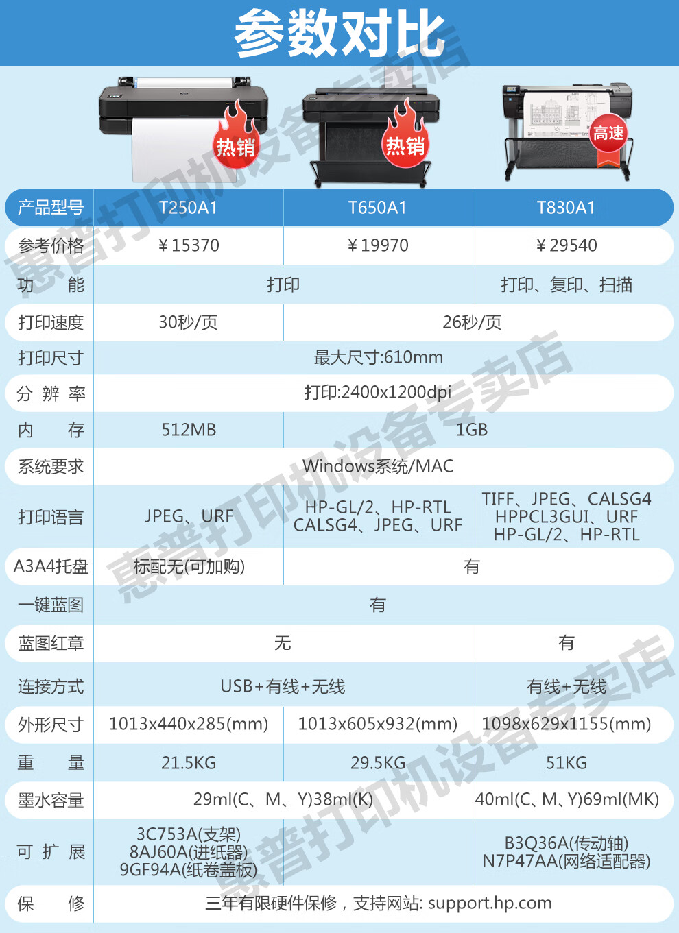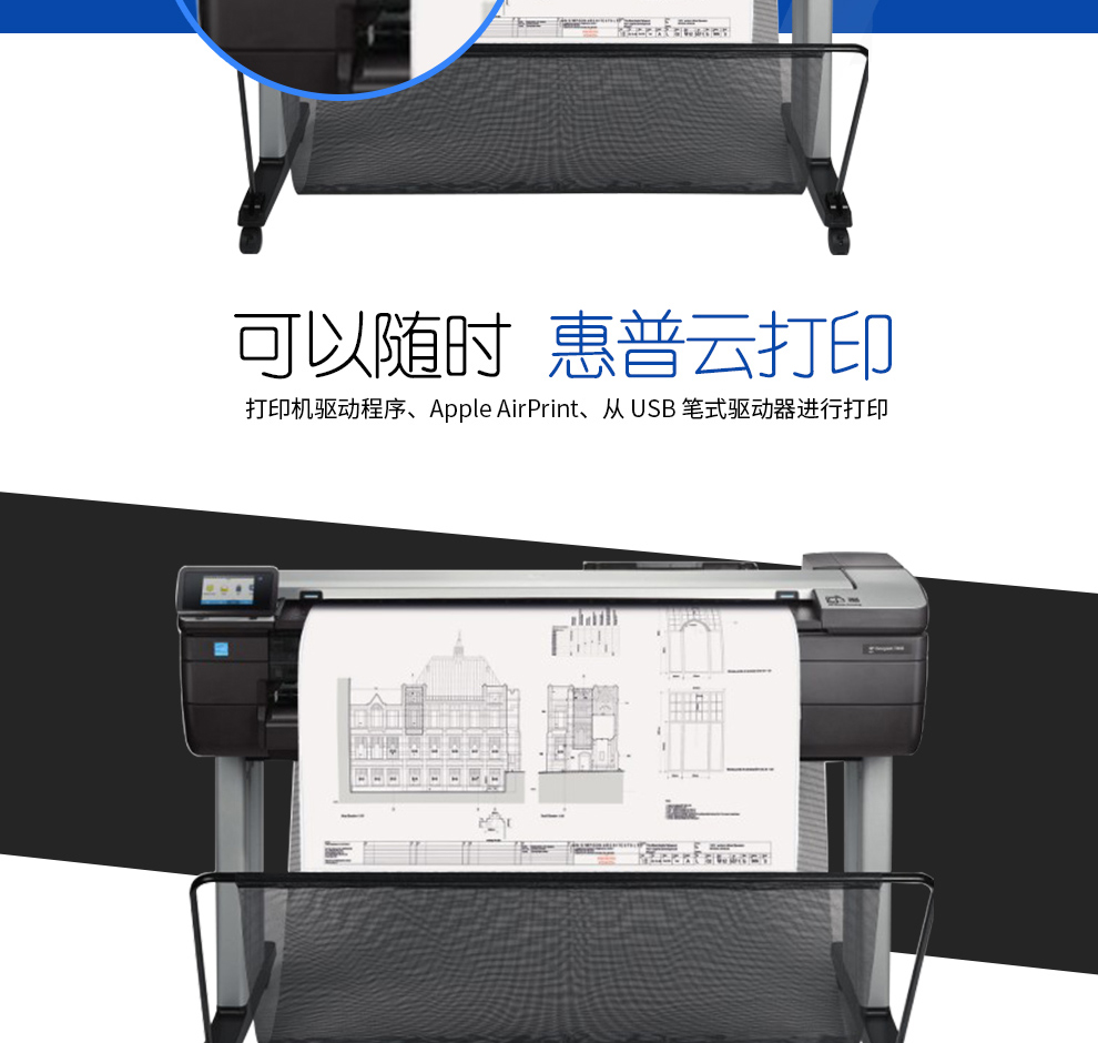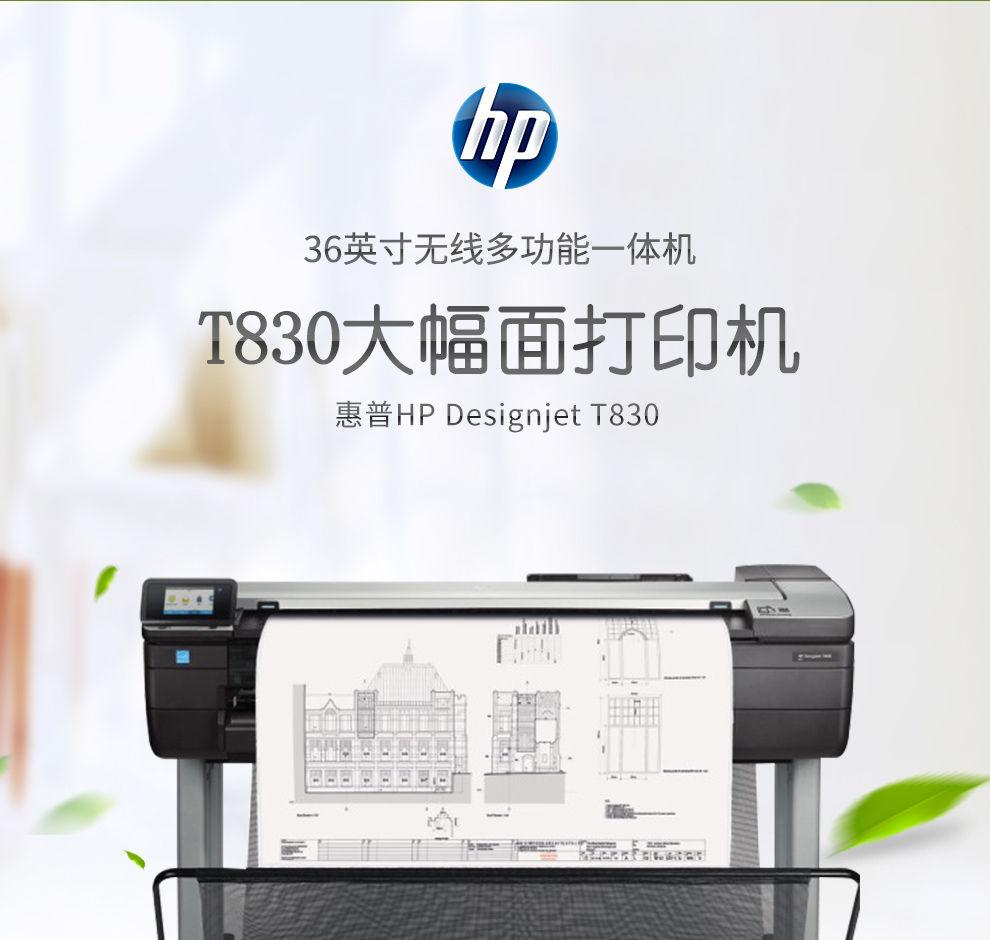 惠普(HP) 繪圖儀 A1A0t650\/730\/830大幅面寫真噴繪機打印機工程CAD及線條藍圖 T730 A0-36英寸4色-有線無線三年服務