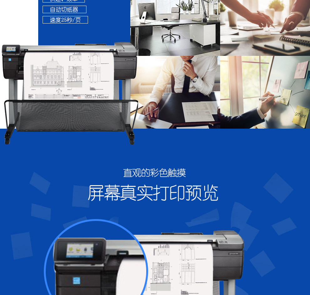 惠普/HP T730 A3 彩色打印機 大幅面寫真噴繪機打印機工程CAD及線條藍圖