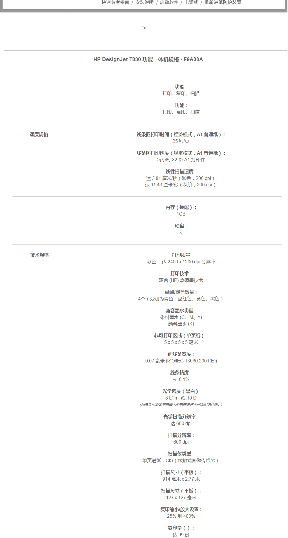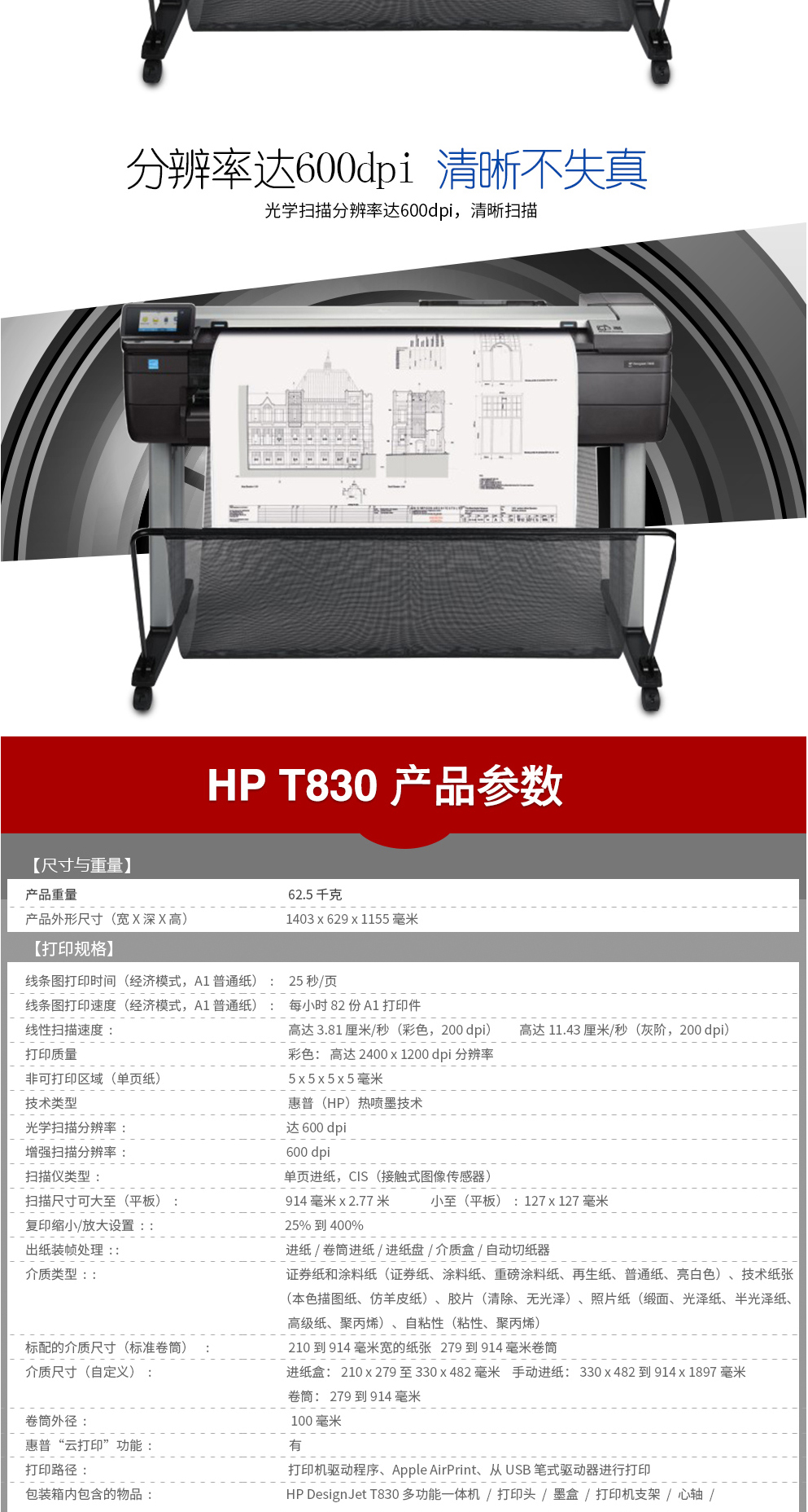 惠普(HP) Designjet T830繪圖儀 A0 多功能一體機(jī) 大幅面打印機(jī)