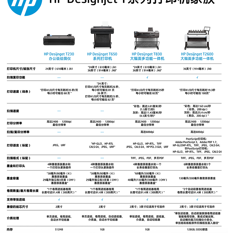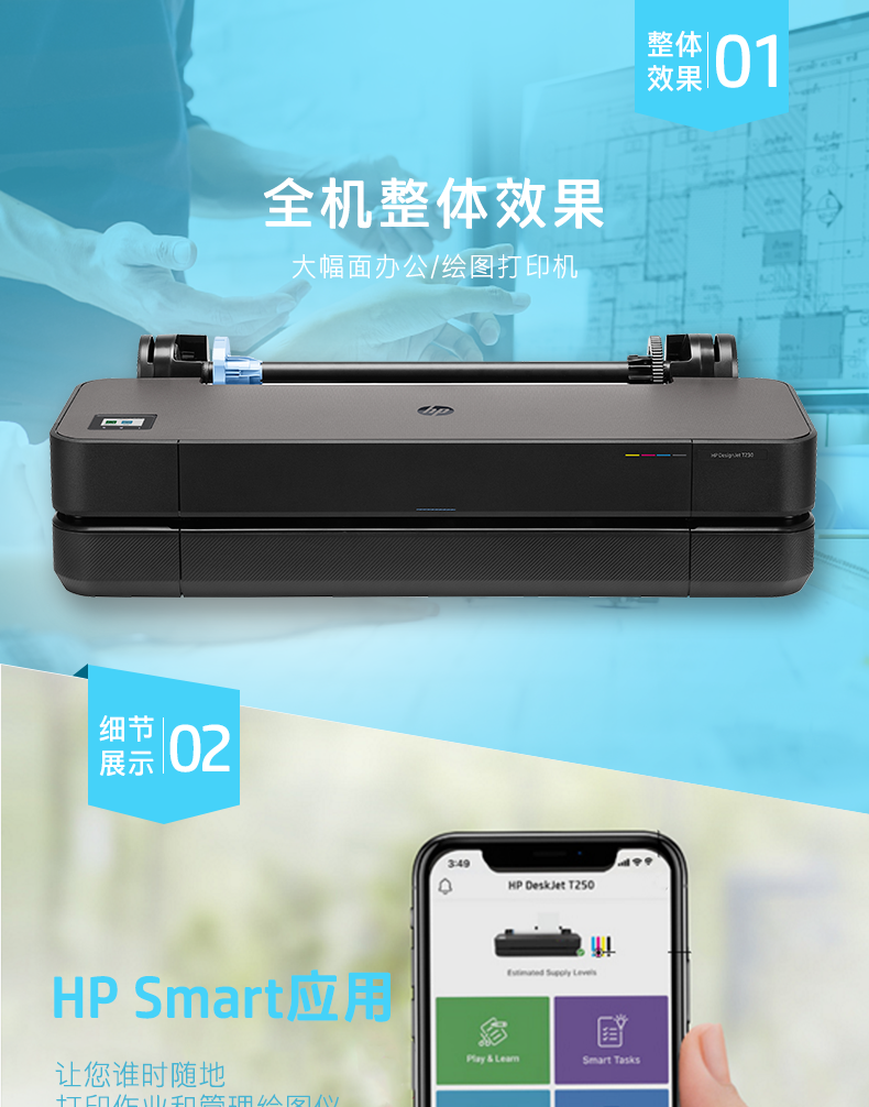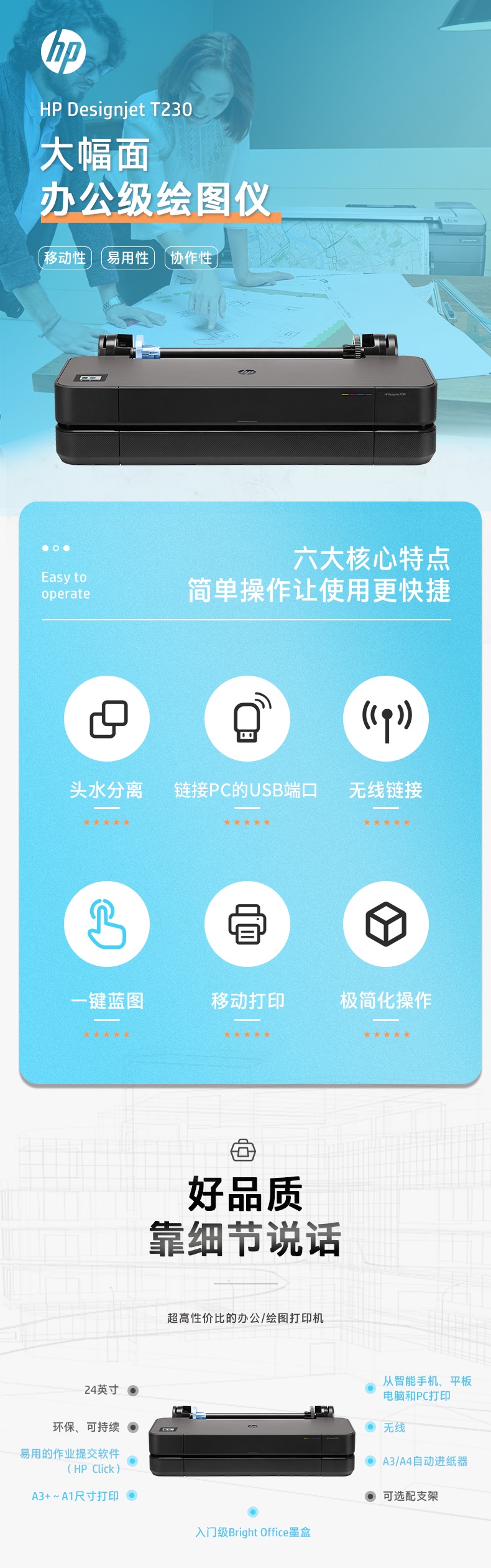 惠普(HP) DesignJet T230 24英寸大幅面臺式繪圖儀