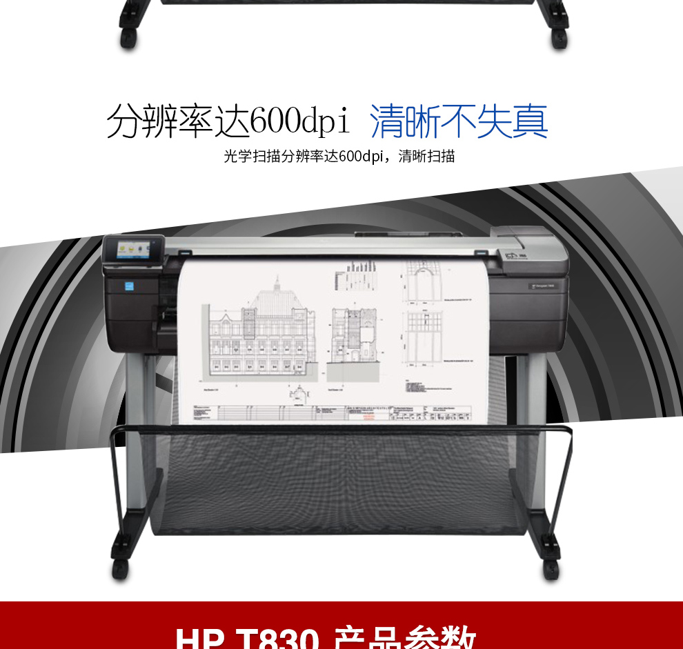 惠普(HP) 繪圖儀 A1A0t650\/730\/830大幅面寫真噴繪機(jī)打印機(jī)工程CAD及線條藍(lán)圖 T1708dr B0+44英寸6色雙紙軸三年服務(wù)