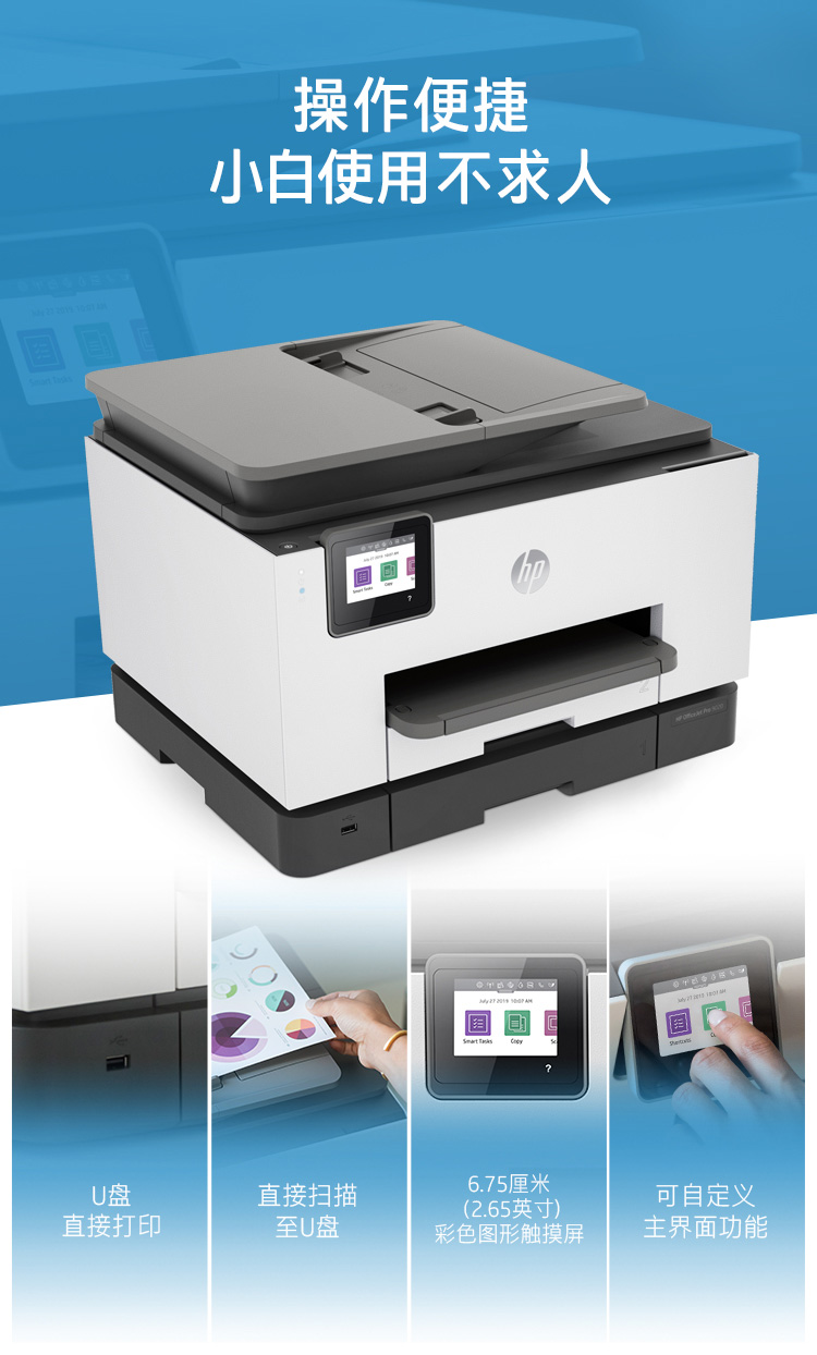 惠普 (HP) OJP 9020商用噴墨彩色無(wú)線多功能一體機(jī)四合一 打印復(fù)印掃描傳真 自動(dòng)雙掃雙打 8720升級(jí)款