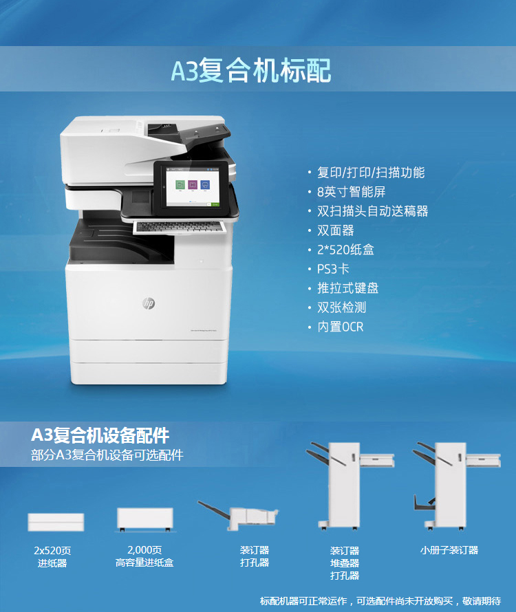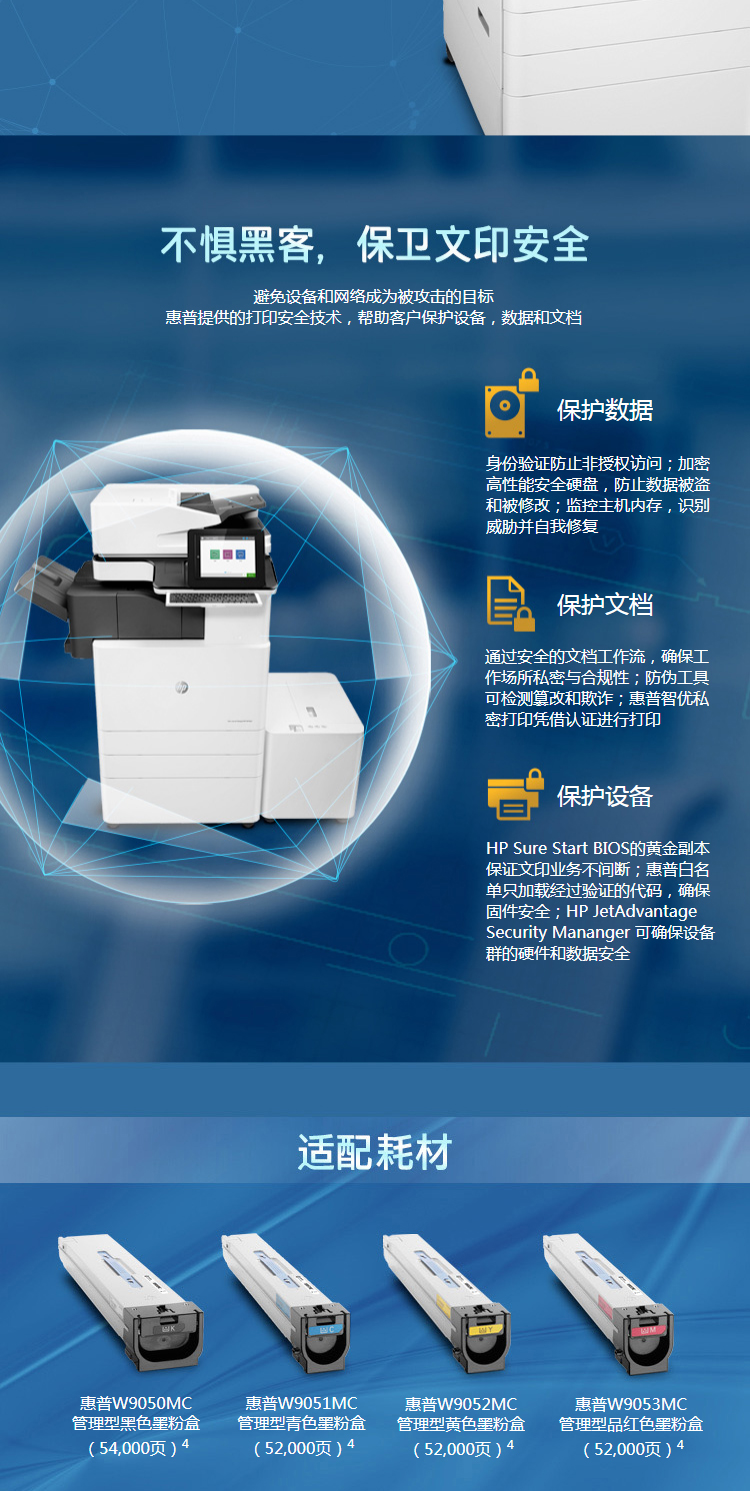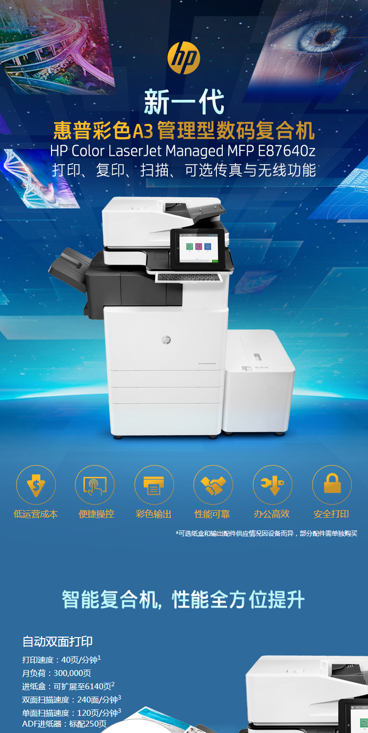 惠普(HP)MFP E87640z A3管理型彩色激光數(shù)碼復合機 打印 復印 掃描 雙面一次掃描 企業(yè)級(原廠1年上門)