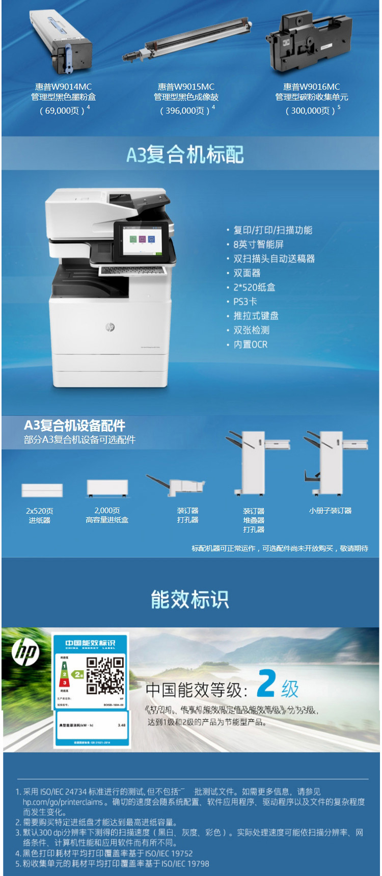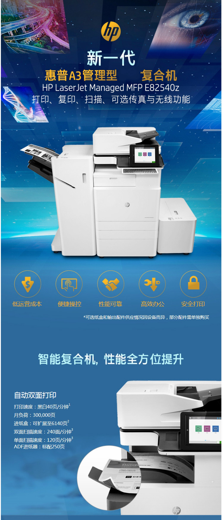 惠普(HP)MFP E82540z 管理型數(shù)碼復合機(打印、復印、掃描;傳真可選) E82540z 官方標配