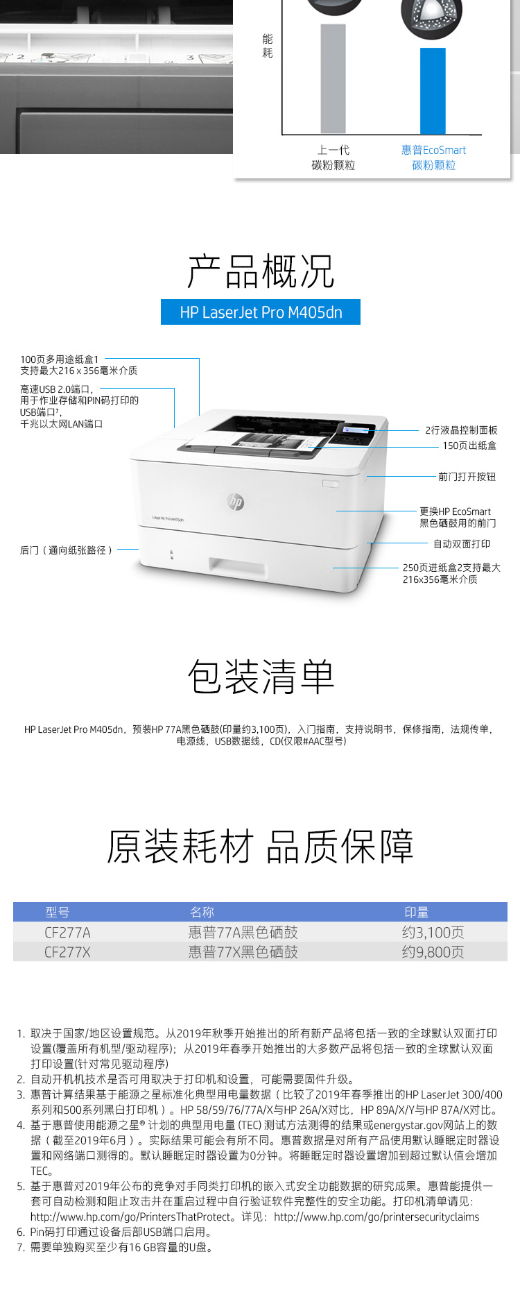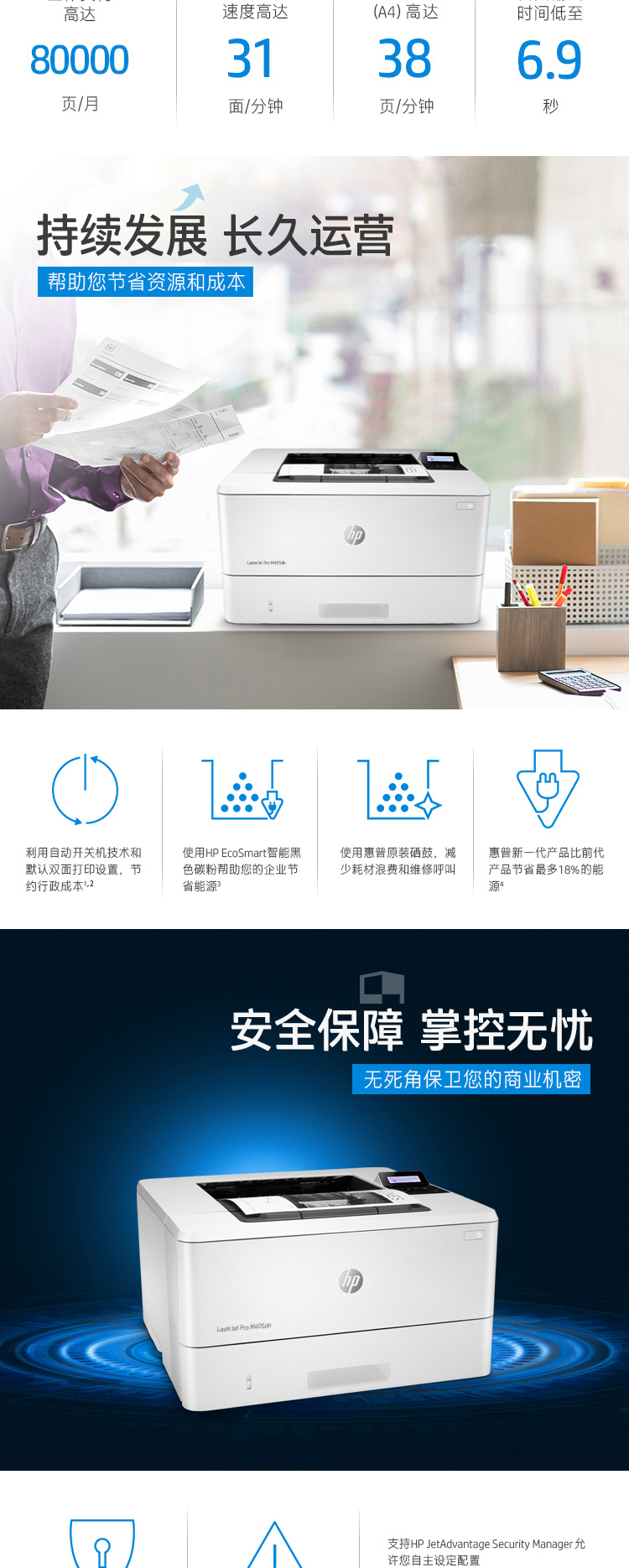 惠普(HP)M405dn激光黑白高速打印機(jī) A4自動(dòng)雙面打印 有線網(wǎng)絡(luò)連接商用辦公