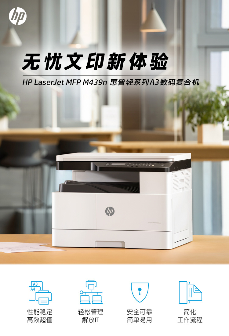 惠普(HP)M439n A3數(shù)碼復(fù)合機(jī) 專業(yè)打印 復(fù)印 掃描 437n升級(jí)型號(hào)