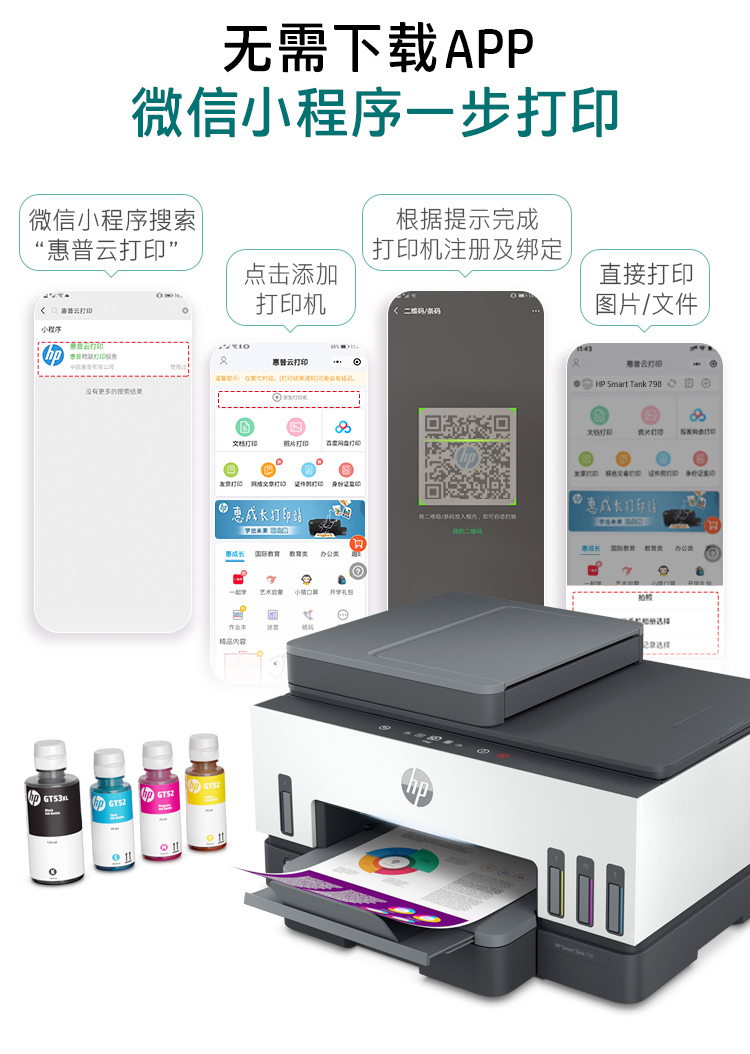 惠普(HP) 打印機 Tank 798 A4彩色噴墨復印掃描一體機雙面打印 [A4彩色一體機]798