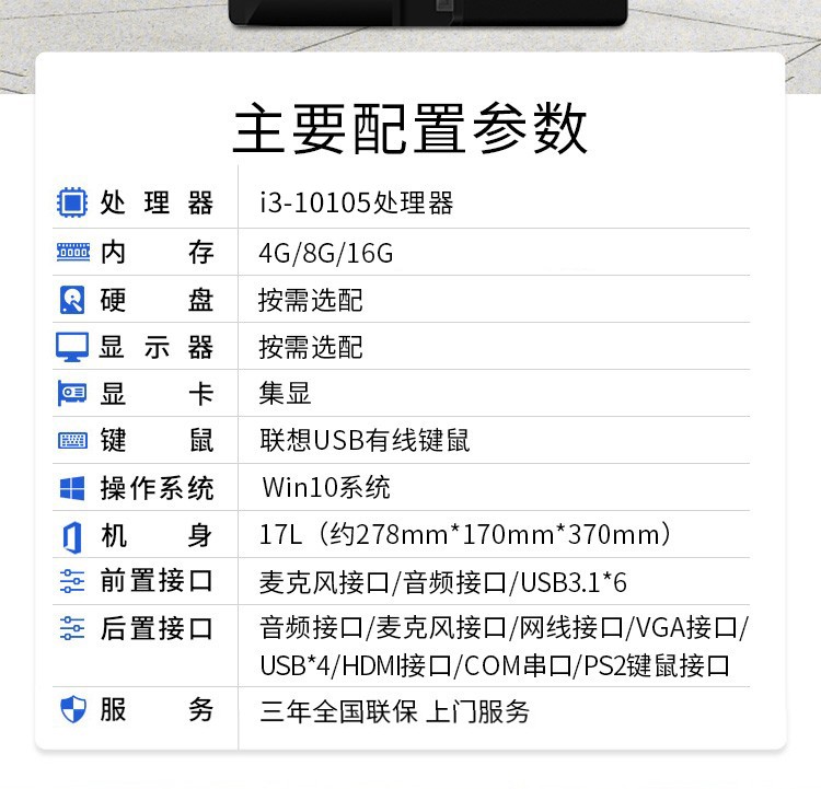 聯(lián)想/LENOVO E98 臺式計算機 酷睿i3-10105四核標(biāo)配 8G內(nèi)存 256G固態(tài) 商務(wù)稅控辦公單主機