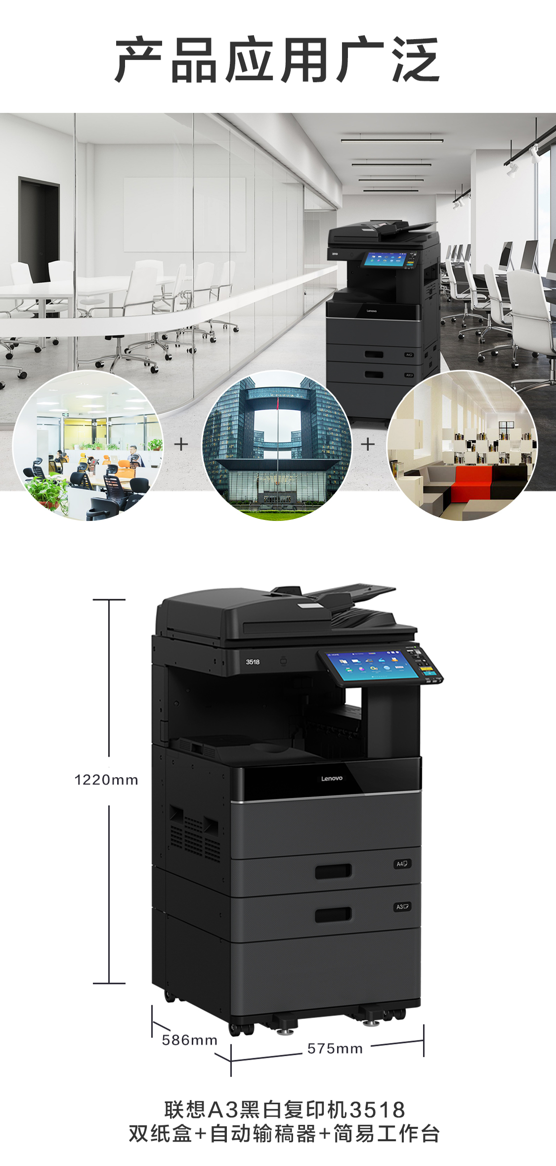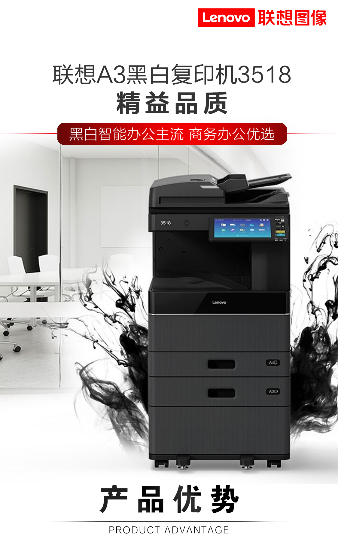 聯(lián)想/LENOVO 3518 A3 黑白打印機 A3黑白激光復(fù)合多功能一體打印機(自動雙面輸稿器+雙紙盒+工作臺)有線網(wǎng)絡(luò) 支持上門安裝