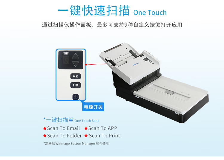影源/WinMage M2100+ 掃描儀 彩色A4幅面ADF+平板式雙平臺(tái)掃描儀 饋紙速度60ppm/120ipm 掃描元器件CCD,ADF加平板一體機(jī)