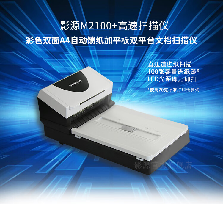 影源掃描儀M2100+彩色A4幅面ADF+平板式雙平臺(tái)掃描儀 饋紙速度60ppm/120ipm 掃描元器件CCD,ADF加平板一體機(jī)