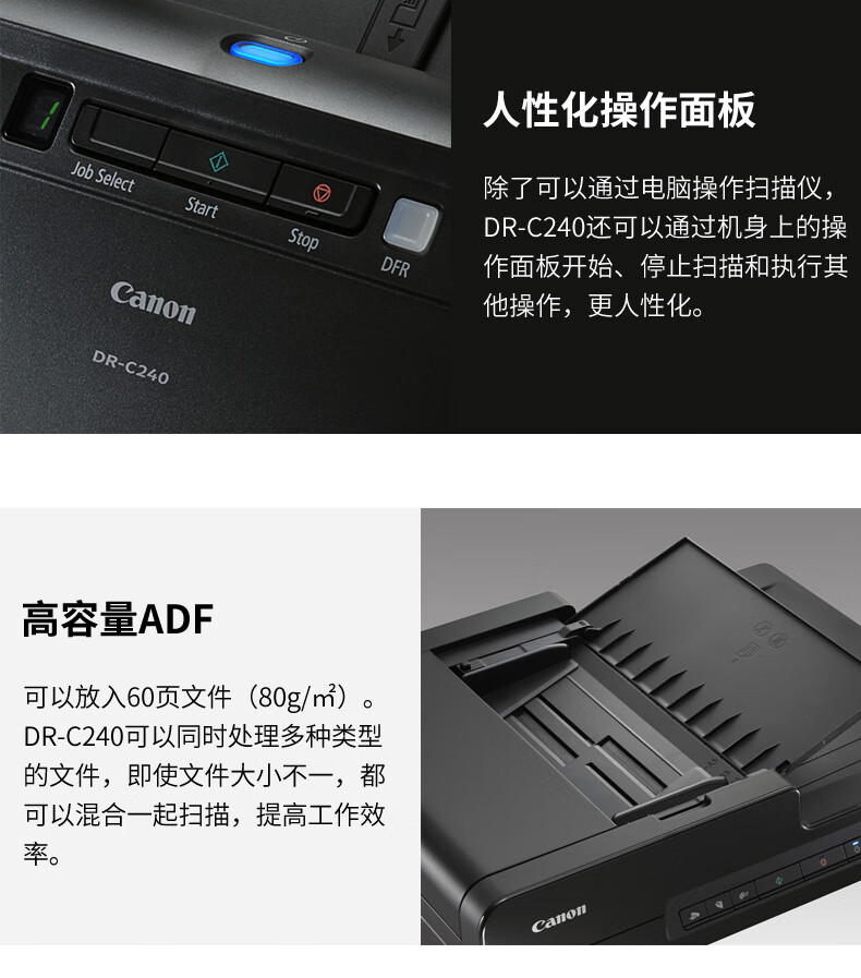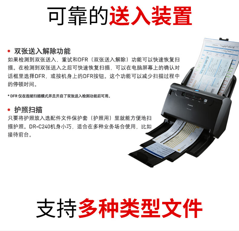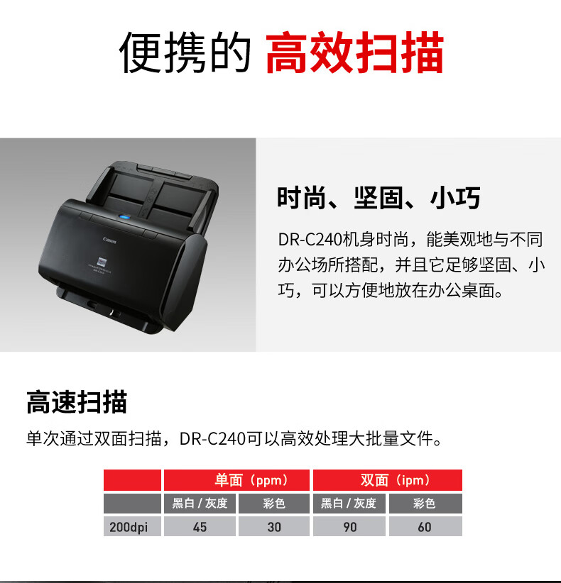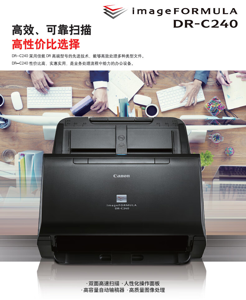 佳能(Canon) DR-C240 彩色文檔雙面高速掃描儀 饋紙式自動(dòng)連續(xù)掃描 批量掃描 文檔合同發(fā)票掃描儀