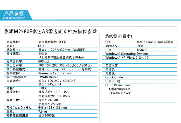 影源/WinMage M2580E 掃描儀 彩色A3幅面零邊距式掃描儀 檔案管理,數(shù)據(jù)加工,成冊(cè)書籍掃描等