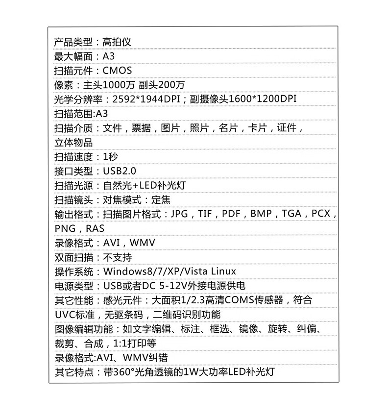良田S1020A3R雙攝像頭a3高拍儀a4帶身份證識別讀卡器閱讀器照片文 S1020A3(1000萬像素