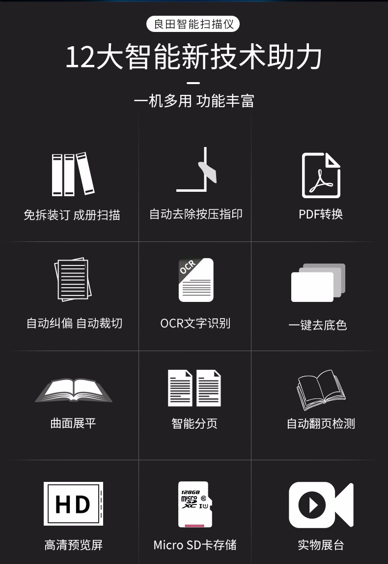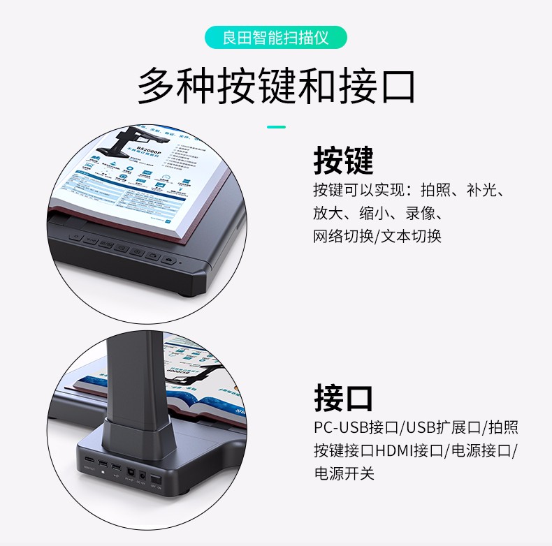 良田(eloam)高拍儀掃描儀2200萬像素高清定焦語音控制高速掃描儀辦公家用文件書籍 BS3000PRO-2800萬像素