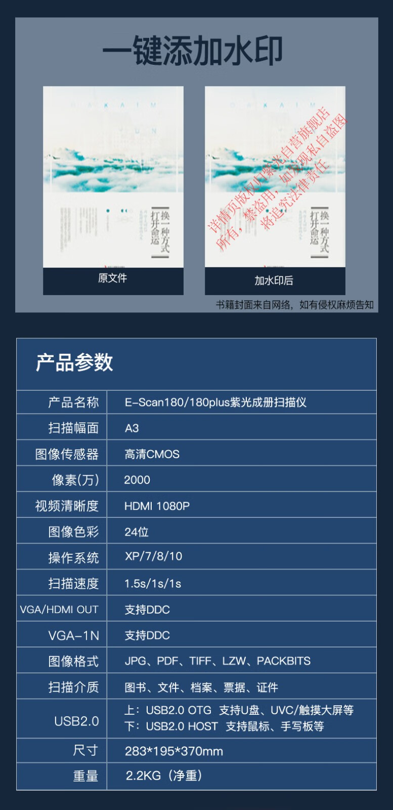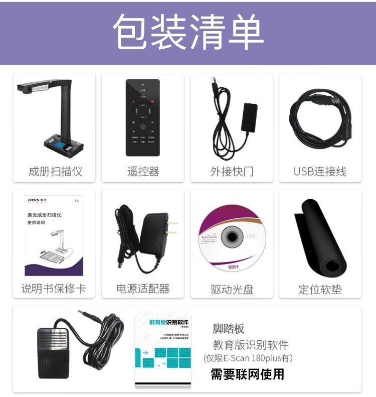 紫光 E-Scan180Plus書籍高拍儀文件檔案合同免拆教育成冊(教育軟件+腳踏板)