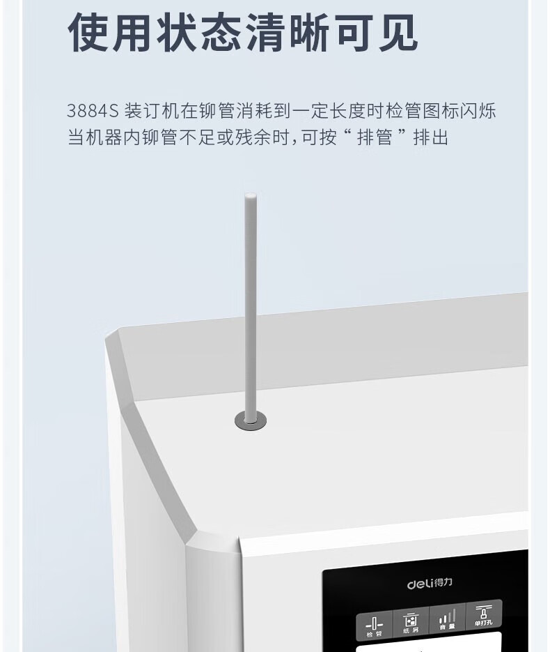 得力/deli 3884S 裝訂及打孔類 60mm全自動(dòng)財(cái)務(wù)憑證裝訂機(jī) 會(huì)計(jì)文件熱熔鉚膠管打孔機(jī) 觸控屏幕一鍵操作 600頁(yè) 全自動(dòng)裝訂