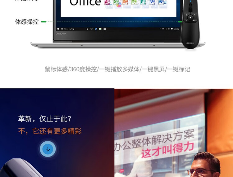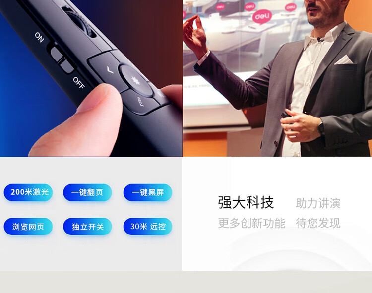 得力(deli) 空中鼠標飛鼠 可充電液晶屏激光筆 教鞭 PPT無線演講演示器翻頁器 幻燈片遙控器翻 紅光 2803
