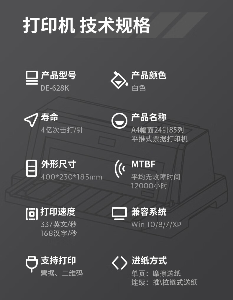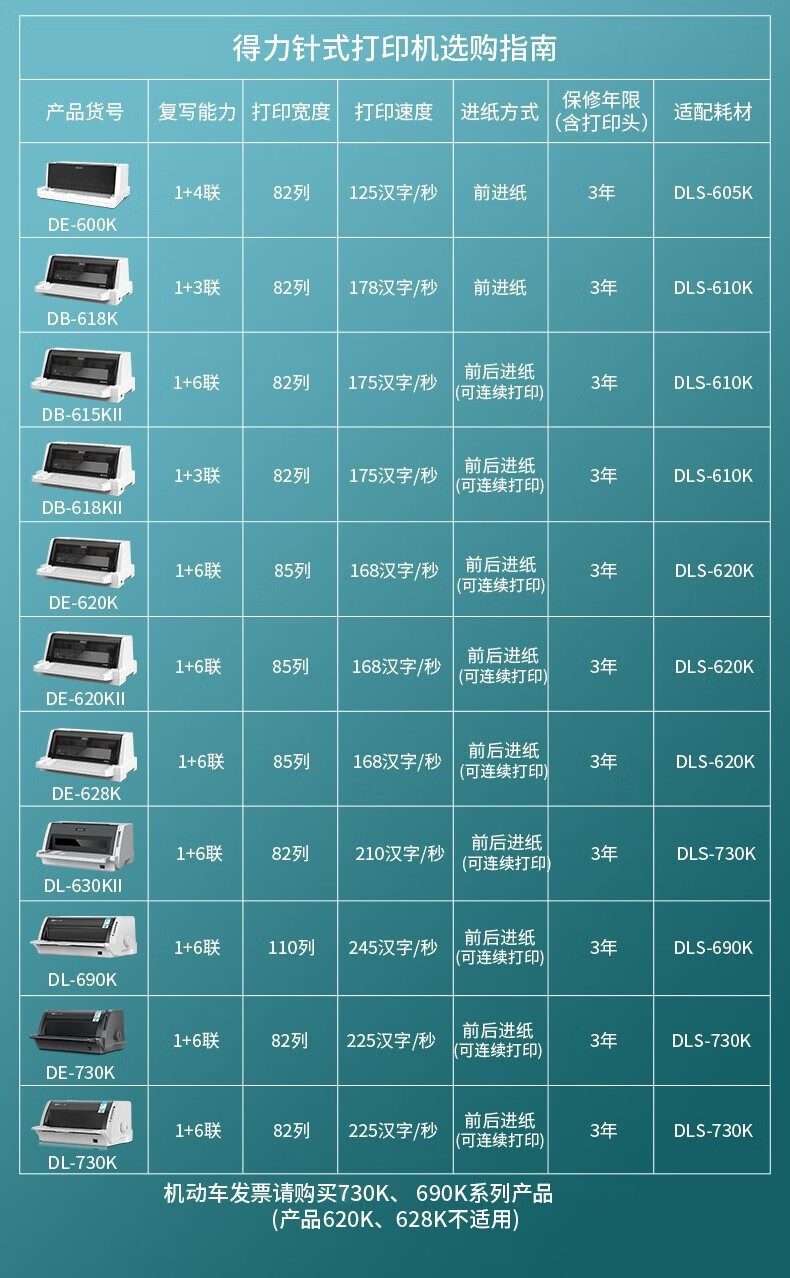 得力/deli DE-620K 票據(jù)打印機(jī) 1 6聯(lián)針式打印機(jī) 稅控發(fā)票打印機(jī) 85列 【7聯(lián)高速】前后進(jìn)紙