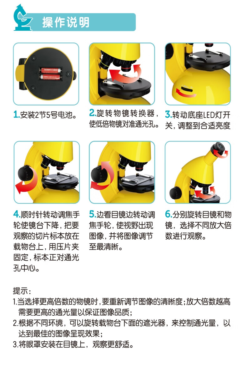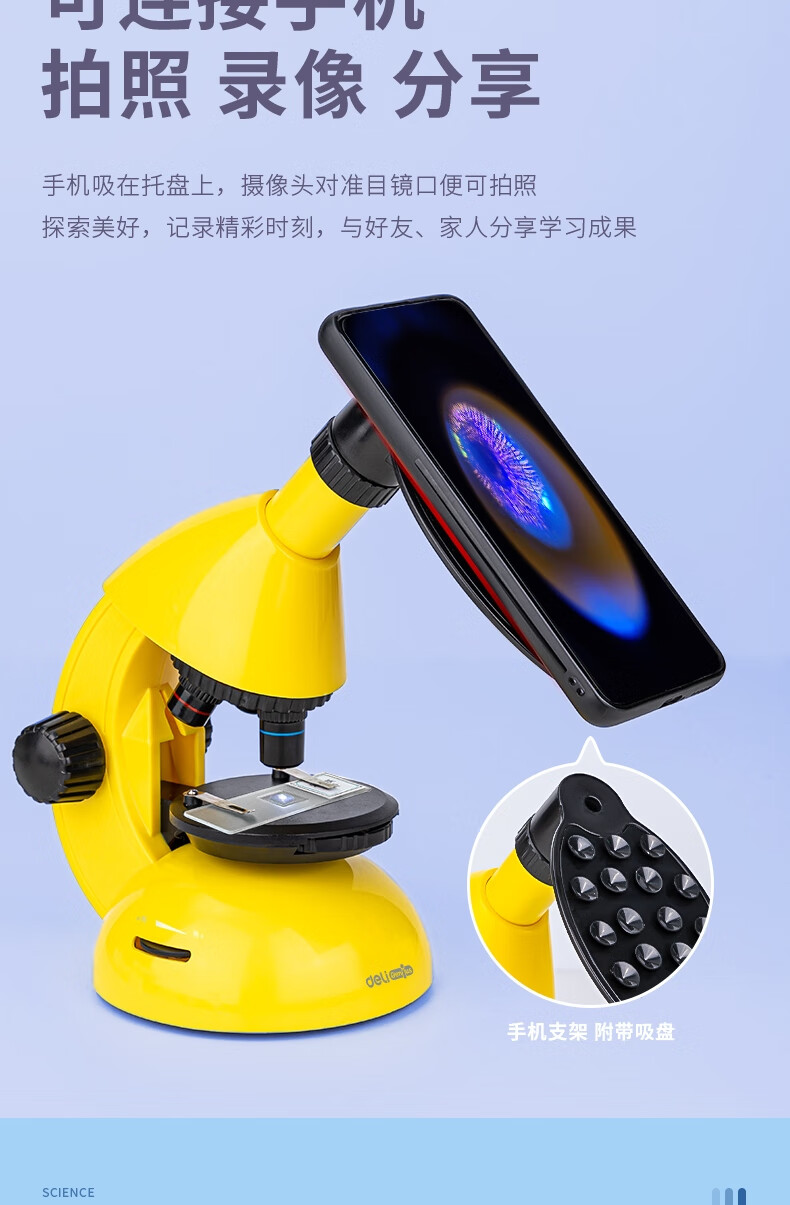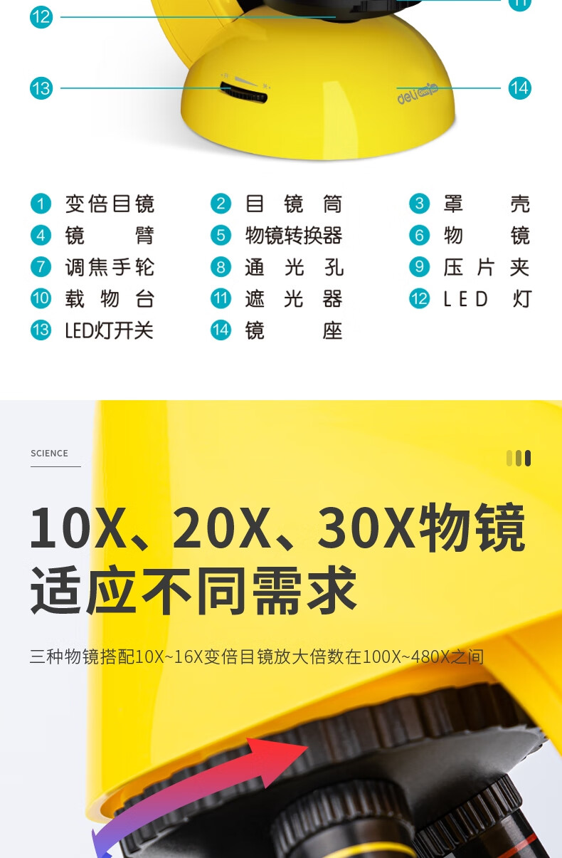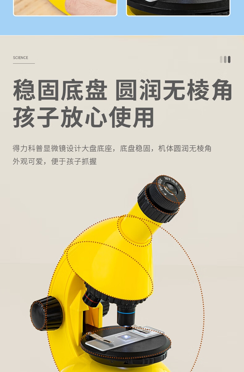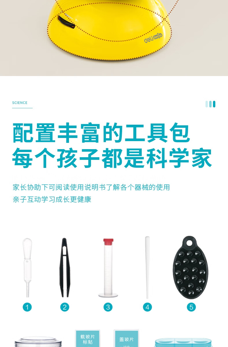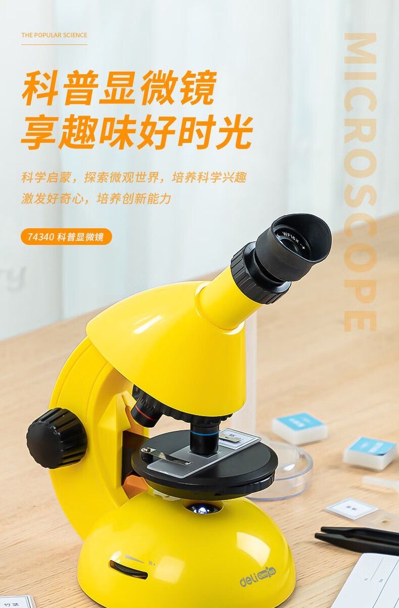 得力科普顯微鏡兒童玩具學(xué)生便攜式男女孩玩具小學(xué)生孩子生日節(jié)日禮物禮盒74340(黃)